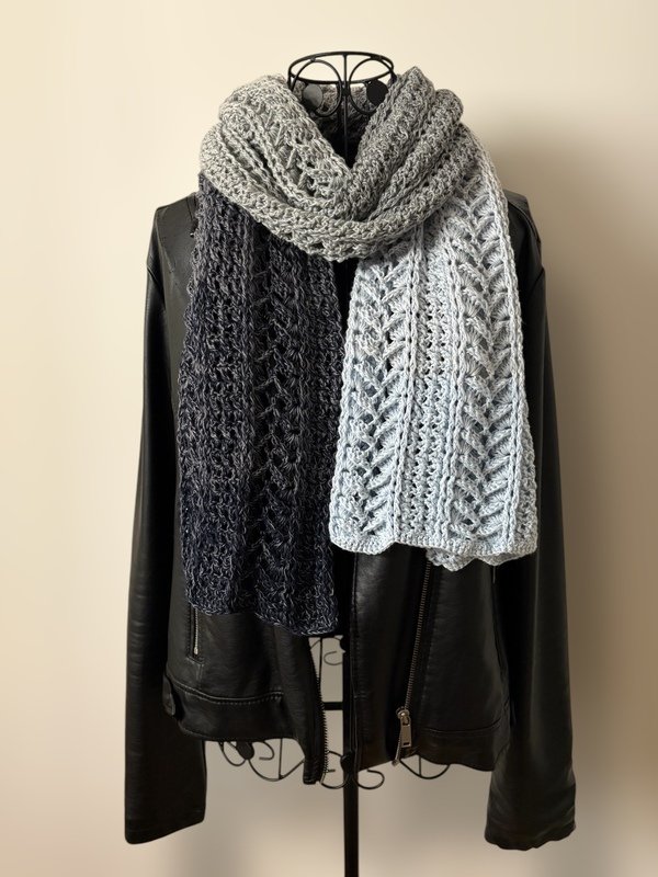 Der Schal Rhodia ist ein absoluter Hingucker, sowohl im Winter als auch wenn es etwas wärmer wird. Der Schal kann in jeder beliebigen Breite und Länge gehäkelt werden, das einfache Muster kann sowohl für Damen als auch für Herren verwendet werden.