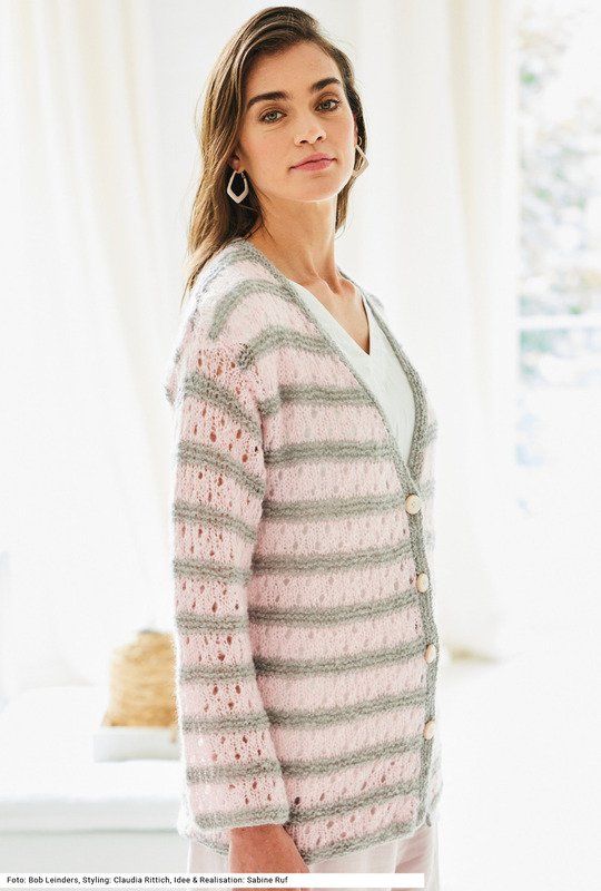 Diese wärmende, aber dennoch sehr leichte Jacke ist ein verlässlicher Begleiter für jeden Tag. Die harmonische Farbkombination aus neutralen und warmen Nuancen macht das Modell bürotauglich, das flauschige Garn (maschinenwaschbar) aus Schurwolle, Mohair, Polyacryl, Polyamid und Kamelwolle sorgt dafür, dass du die Jacke auch abends auf der Couch nicht ausziehen willst. Ein etwas weiterer Schnitt trägt ebenfalls zur Bequemlichkeit bei. Kraus rechte Streifen in dunklerer Farbe und Ajourmusterstreifen aus hellem Garn bringen Abwechslung ins Stricken. Alle Ränder sind in dunklerer Farbgebung kraus rechts gearbeitet. Die Anleitung hierfür gibt es in den Größen 38/40, 44/46 und 50/52.