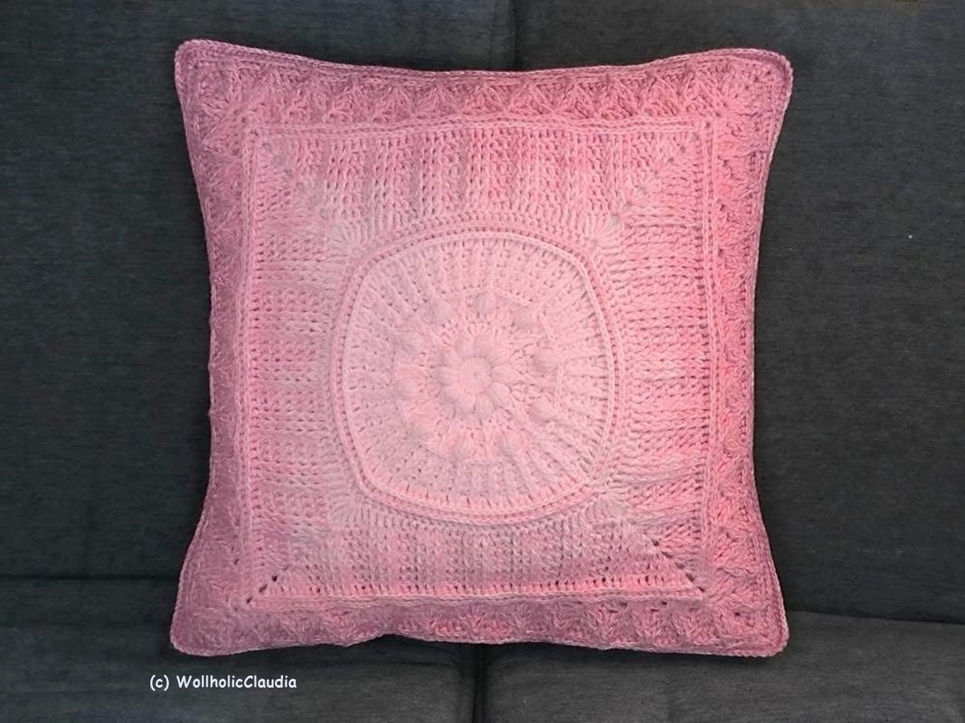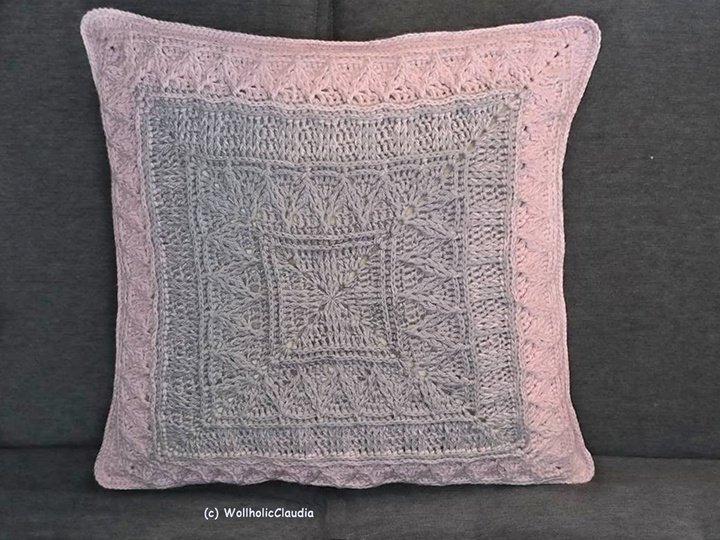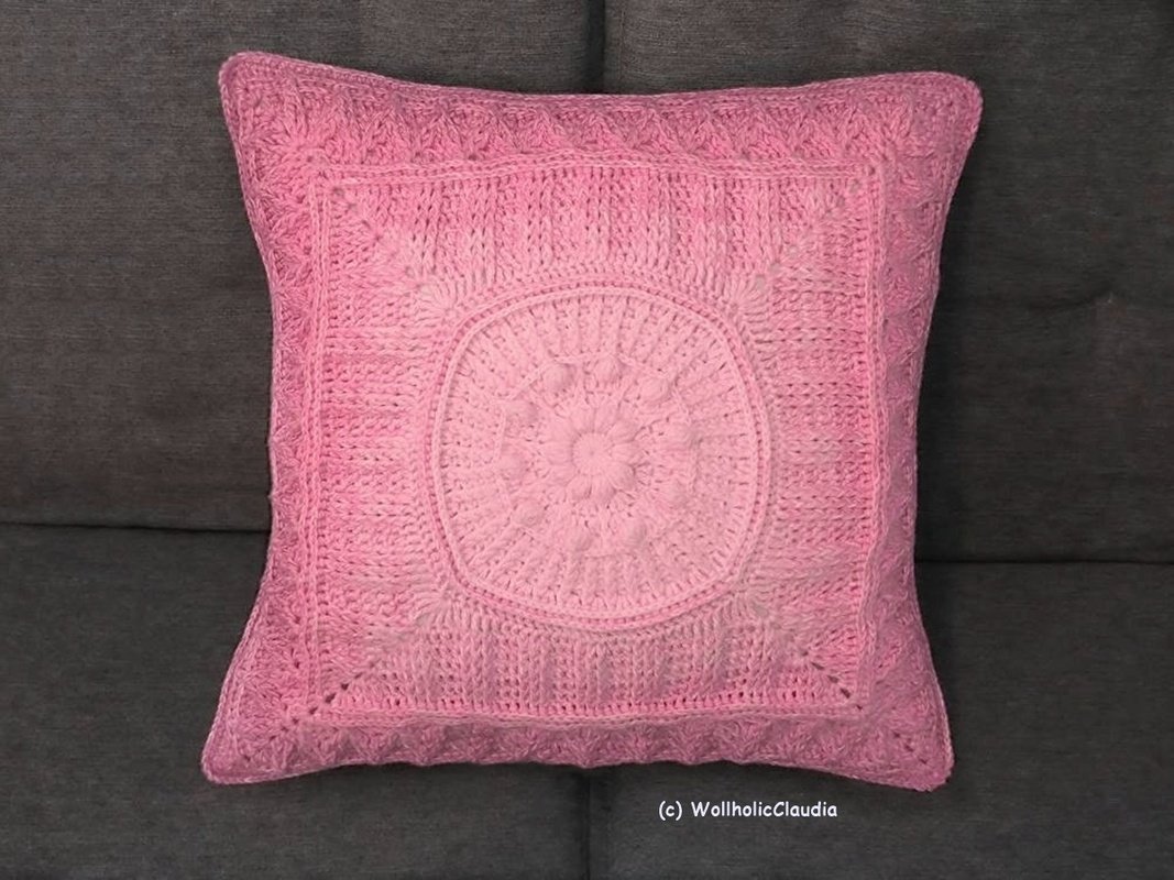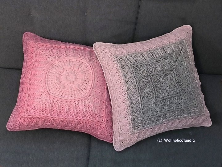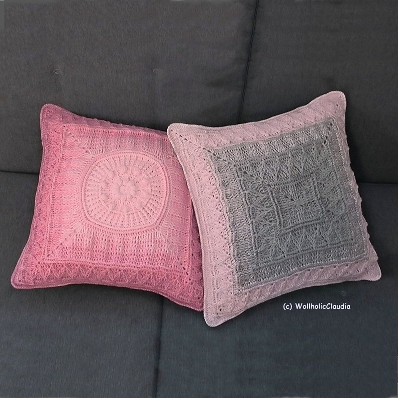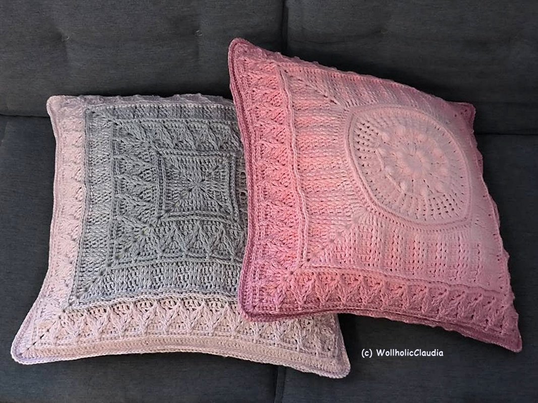 Du bekommst 2 Varianten, einmal mit einem runden Element in der Kissenmitte und einmal komplett quadratisch.