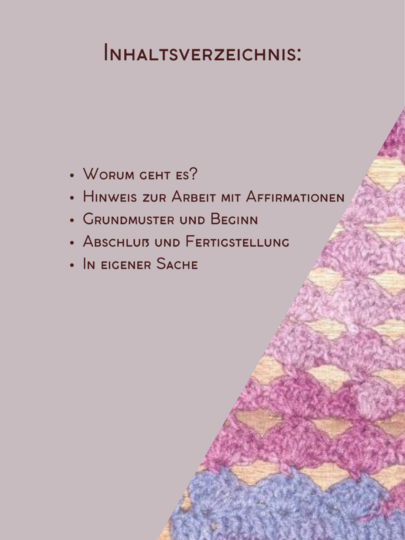 Das Muster ist auf 40 x 130cm Länge ausgelegt. Durch Wiederholung der Affirmation ist die Länge variierbar.
