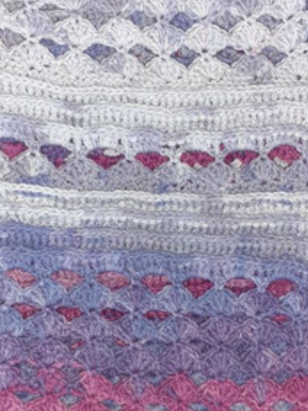 Egal ob du Anfänger*in oder Profi bist – mit dem Muschelmuster und Reliefstäbchen kommst du voll auf deine Kosten. Wähle dein Lieblingsgarn und die passende Häkelnadel aus, und schon entsteht ein wahres Kunstwerk, das etwa 40 x 130cm oder mehr, groß wird.
