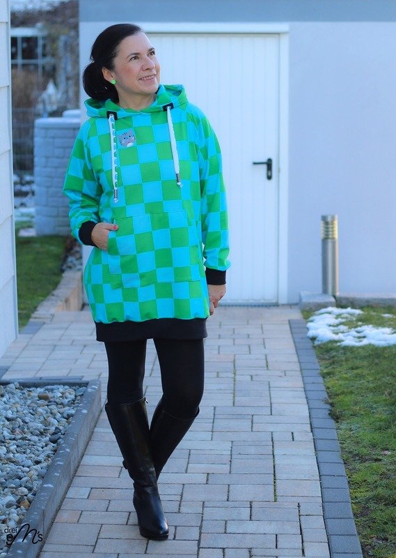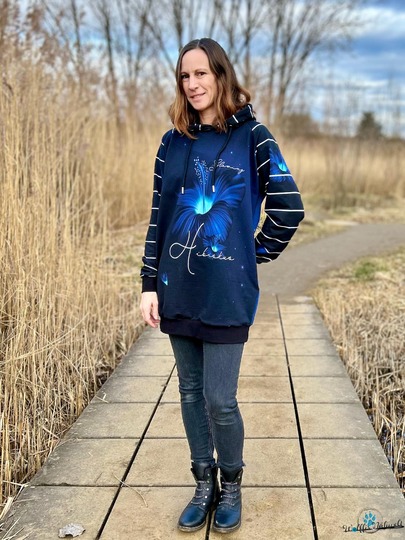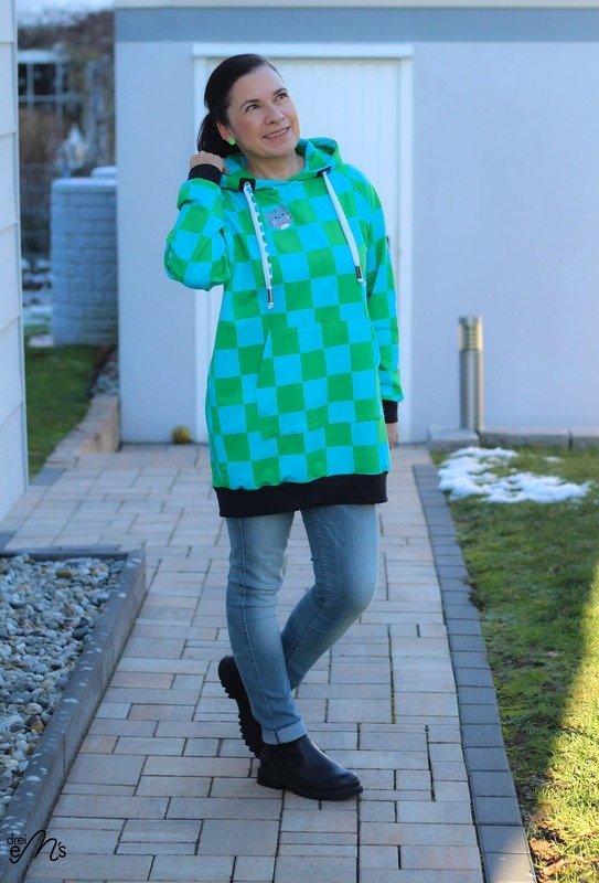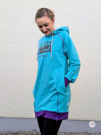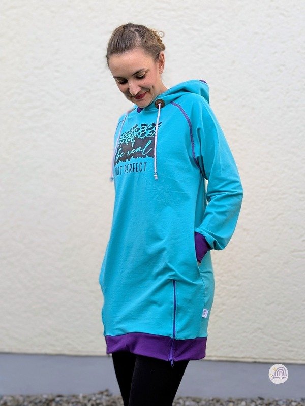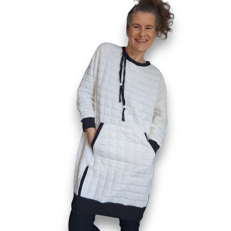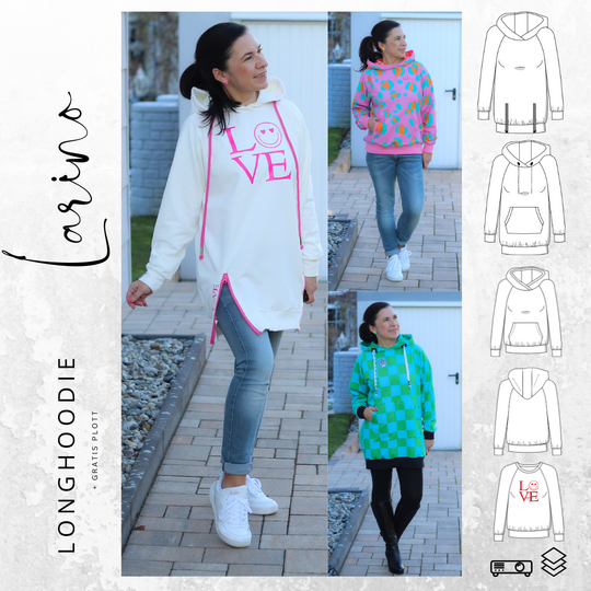 Der Longhoodie LARINO ist in den Größen 32 bis 56 erhältlich und ideal für Anfänger. Der Schnitt bietet dir gleich drei Saum- und Ärmellängen zur Wahl.