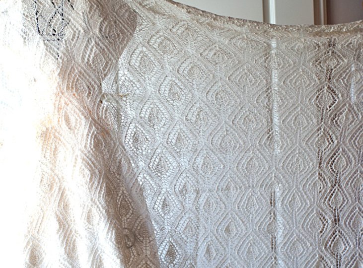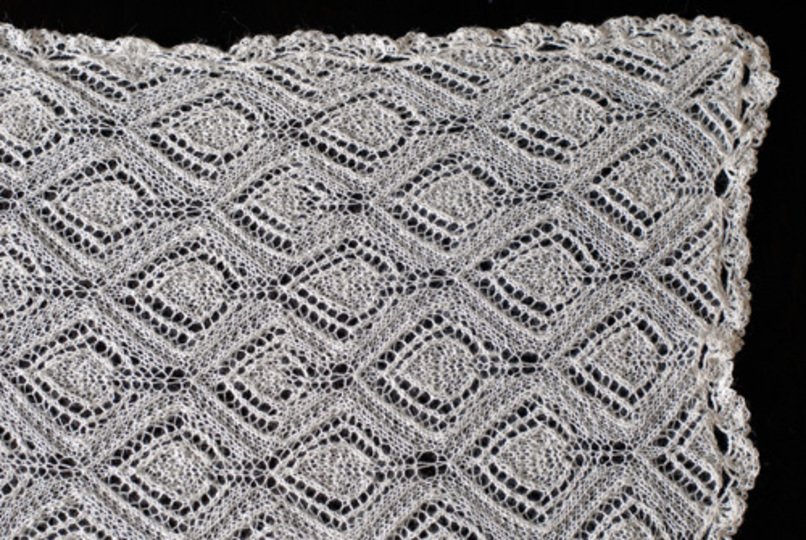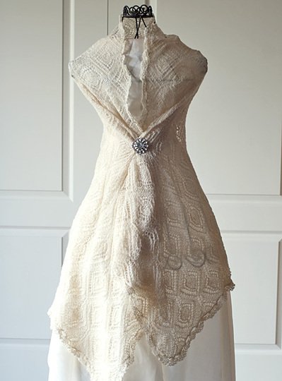 Strickanleitung für das Lace Spitzentuch "Annabelle". Materialverbrauch: ca. 2100 m feines Lacegarn. Gestrickt wird im Ajourmuster, anschließend erfolgt eine Umhäkelung im floralen Muster. Alle Angaben für das Tuch beruhen auf einer Endgröße von 160 x 90 cm - eine Anpassung der Größe ist jedoch einfach möglich.