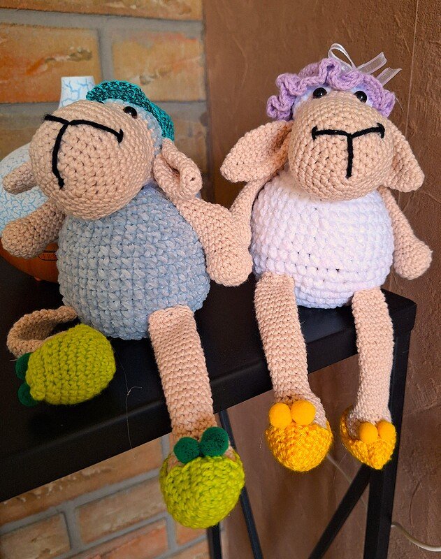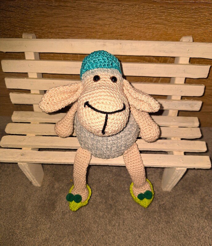 Mit meinem Materail werden die Schäfchen ca. 17 cm sitzend.