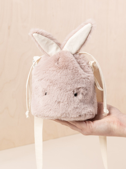 Der Hase ist aus weichem Plüsch gefertigt, und das runde Design bietet viel Stauraum, ohne zu groß zu wirken. Ideal für Spielzeug, Snacks oder andere kleine Schätze, die immer dabei sein müssen. Besonders gut finde ich es, wenn man für die Ohren, den Tunnelzug und das Futter einen passenden Musterstoff verwendet – das verleiht der Tasche noch mehr Charakter.
