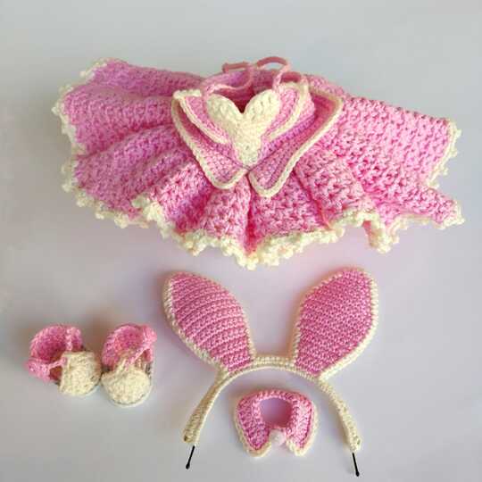 Diese Häkelanleitung enthält eine ausführliche Beschreibung mit vielen Schritt-für-Schritt-Fotos, wie man Kleidung für die Puppe bastelt: Kleid, Schuhe, Kragen und Haarreifen.