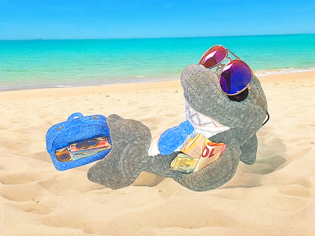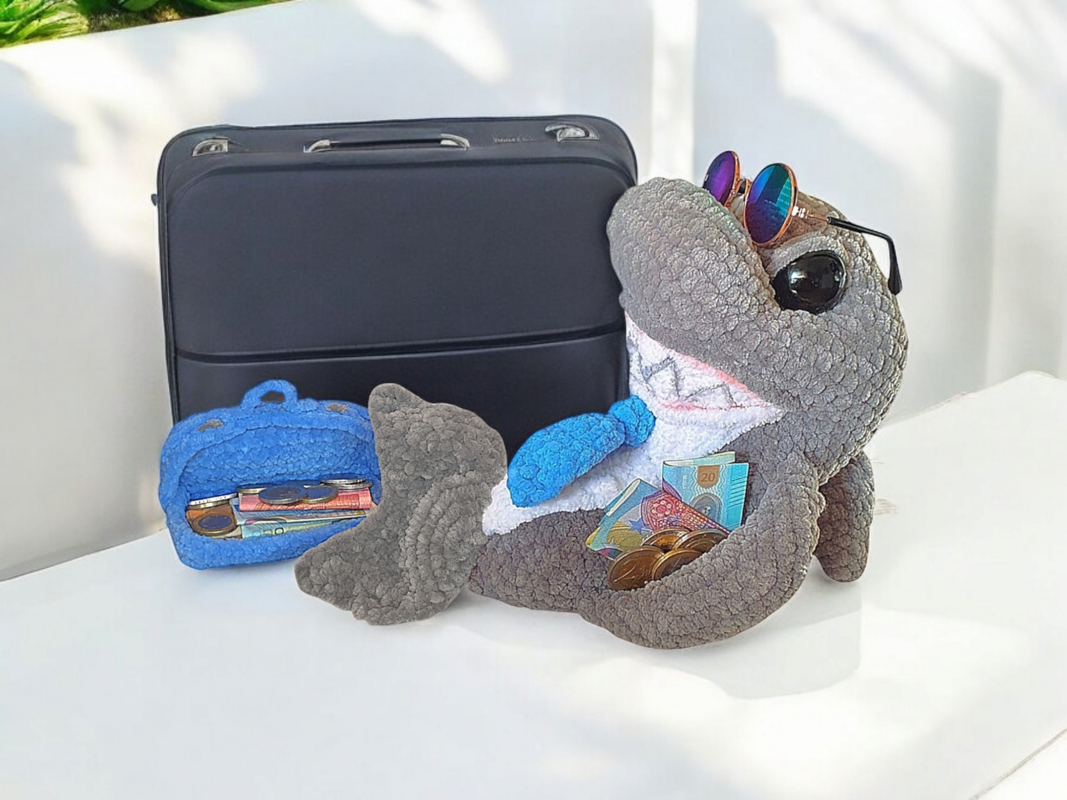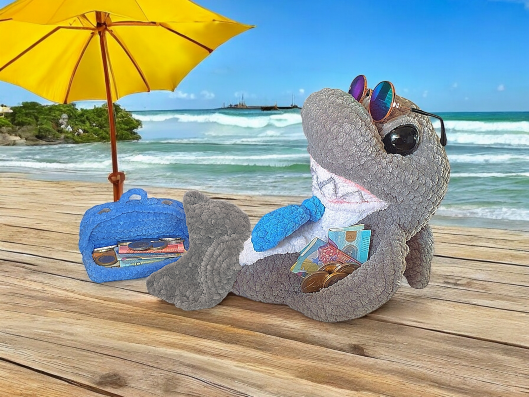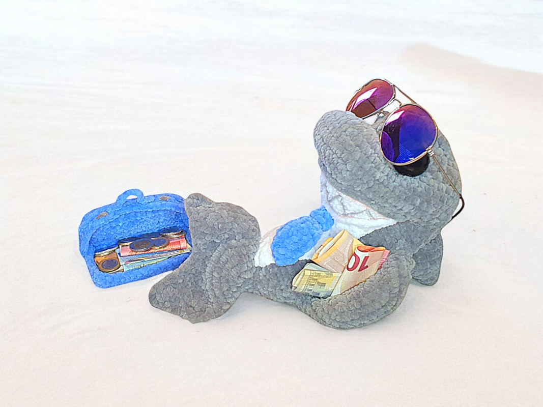 Maney der Finanzhai ist ein lustiges Büro Accessoire und gleichzeitig ein praktischer Brillenhalter. In seinem Koffer finden Büroklammern, USB-Sticks und andere nützliche Kleinigkeiten Platz und sind so immer griffbereit und gut in Szene gesetzt. Falls Many verschenkt werden soll, kannst Du den Koffer z.B. auch mit Geldscheinen oder anderen tollen Sachen befüllen. Die Scheine finden auch unter seiner Flosse reichlich Platz. Andernfalls können hier wichtige Notizen platziert werden.