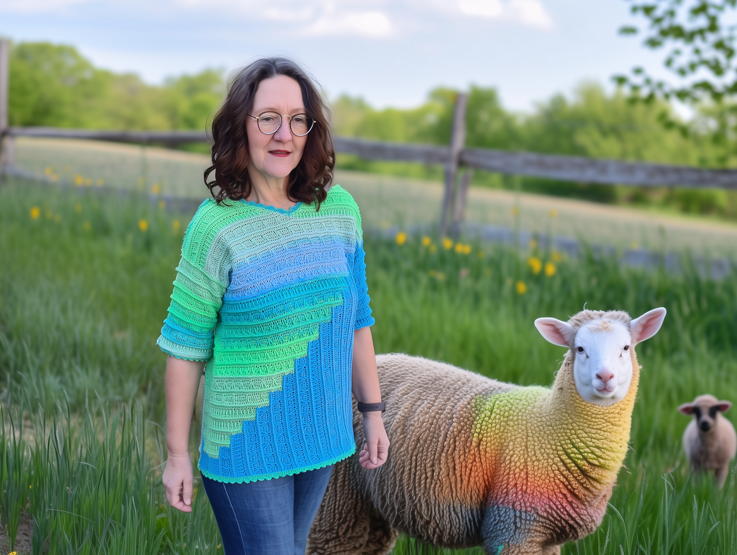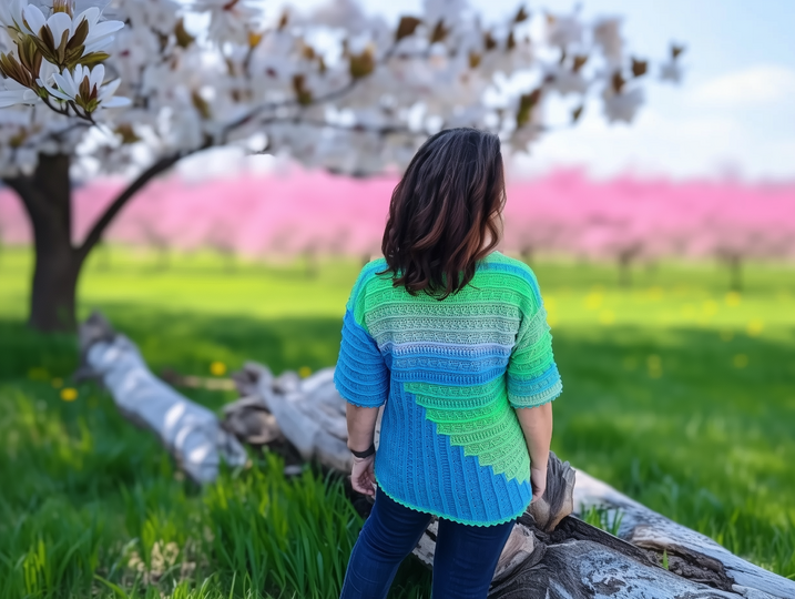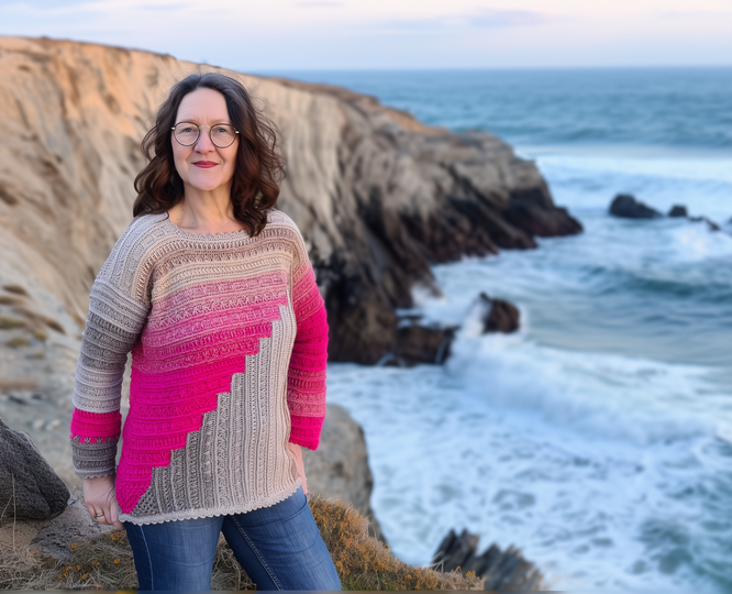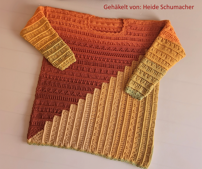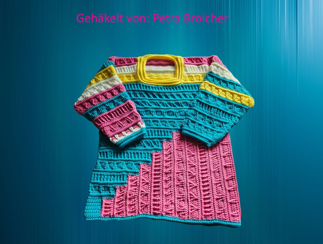 Der Häkelpullover ist flexibel an jede Größe anpassbar.