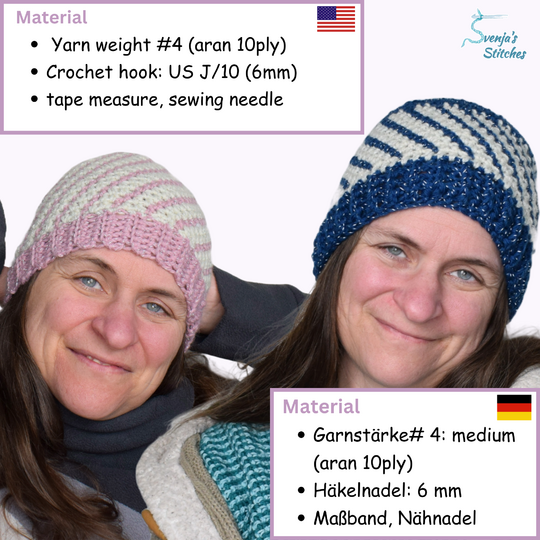 Schluss mit langweiligen Häkelmützen, die jeder hat! Das Besondere an dieser Mütze sind die senkrechten Streifen und dass sie für alle Altersklassen gehäkelt werden kann. Sie kann als Kindermütze, Häkelmütze für Damen und Herren sowie auch als Mütze fürs Baby gehäkelt werden.