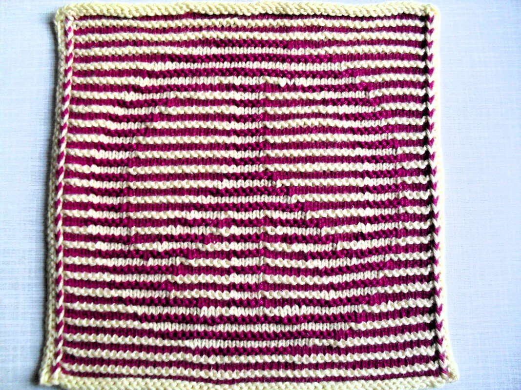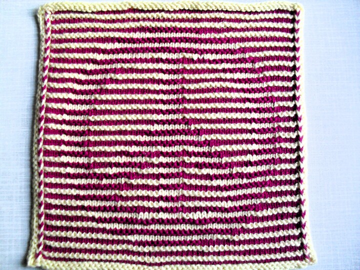 Benötigt wird Baumwollgarn in zwei Farben, gesamt ca. 40 Gramm. Ich habe meine Anleitungen mit Catania, Cotone von Lanagrossa, Limone von Schöller und Stahl, Ibiza von Twister oder Baumwolle von Sostrene greene und von Mayflower gestrickt, je nachdem, wo mir die Farben am besten gefallen haben. Die Nadelstärke ist 2 1/2 oder 3, je nach Material und Strickweise, es muß sehr fest gestrickt werden!