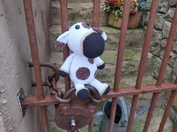 Wenn Luna Muh so gehäkelt wird wie hier beschrieben, dann ist sie 30 cm groß.