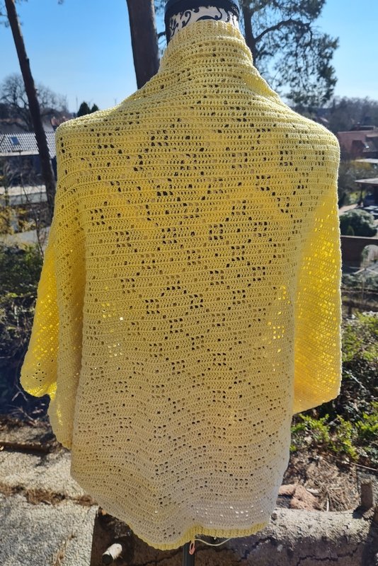 Ich habe eine Größe von 1,30m x 0,86m gehäkelt. Die Größe kann beliebig angepasst werden.
