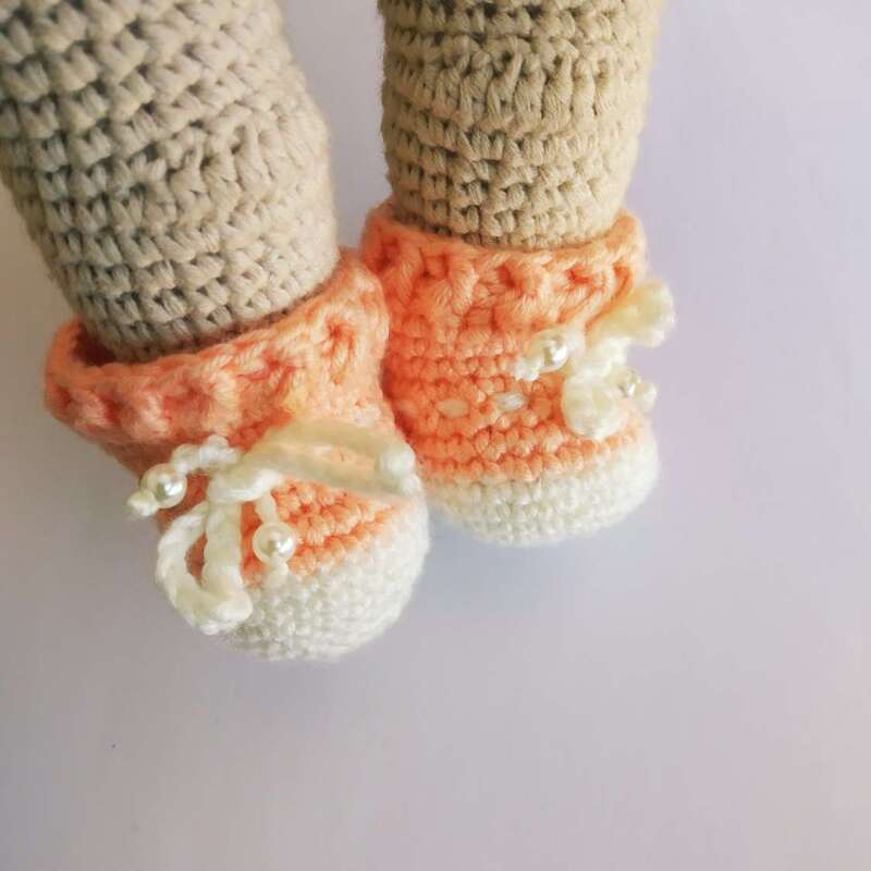 Größe: Für eine Puppe mit einer Körpergröße von 30 bis 32 cm. Die Größe der Kleidung hängt von der Garnstärke und der Hakenstärke ab. Ich habe die 2,00 mm Häkelnadel und das Kartopu Baby Natural Garn 100 g/200 m verwendet