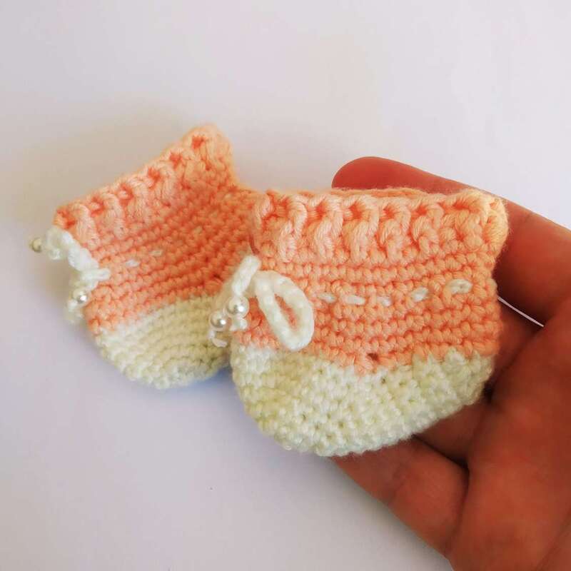 Dieses Häkelmuster enthält eine detaillierte Beschreibung mit vielen Schritt-für-Schritt-Fotos, wie man Kleidung für eine Puppe bastelt: Body für eine Babypuppe, Handschuhe, Mütze und Stiefeletten.