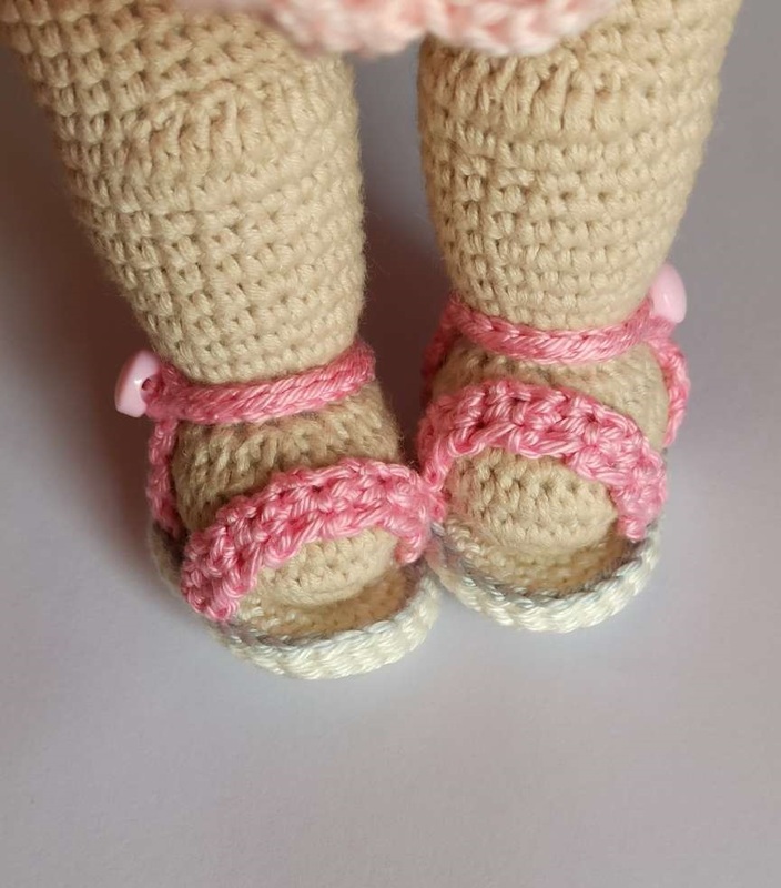 Diese Häkelanleitung enthält eine ausführliche Beschreibung mit vielen Schritt-für-Schritt-Fotos, wie man Kleidung für die Puppe bastelt: Kleid, Sandalen, Stirnband und Höschen.