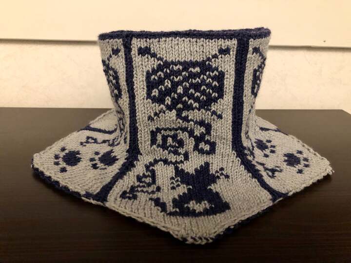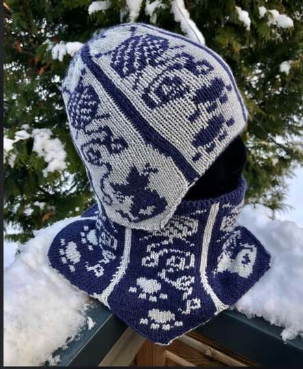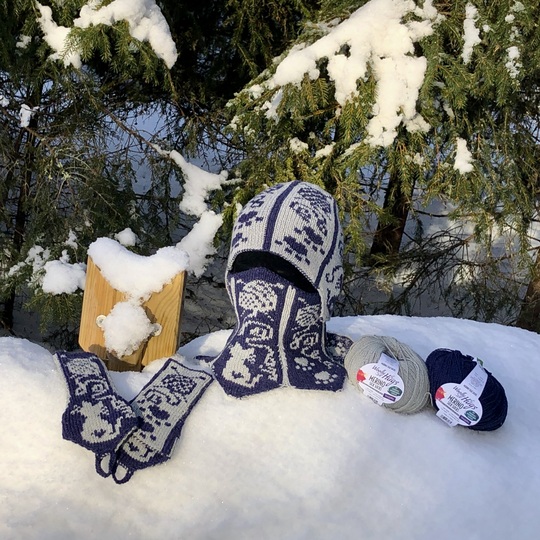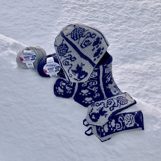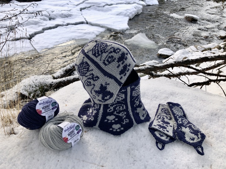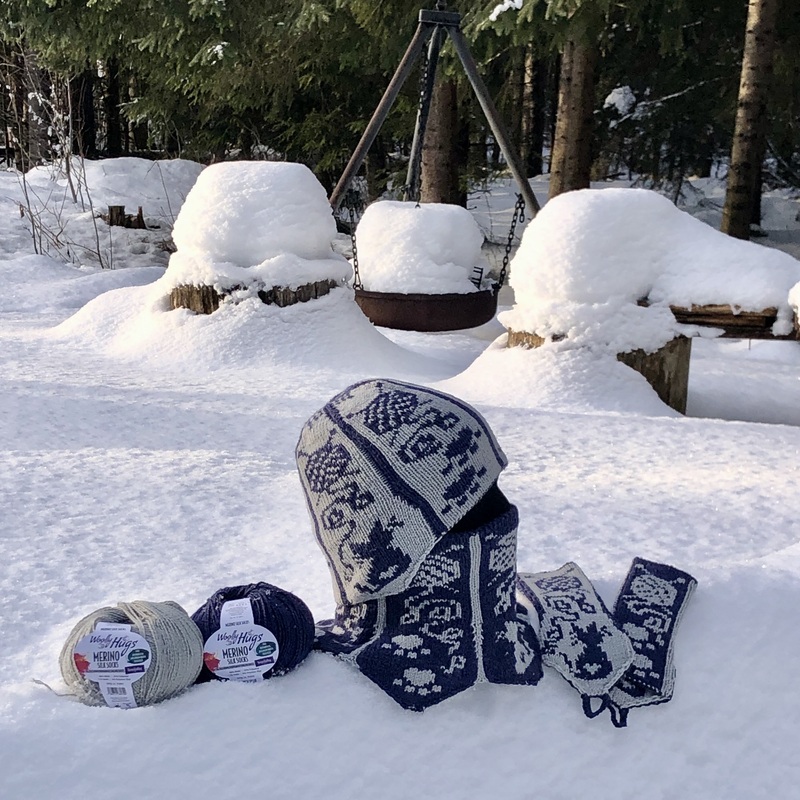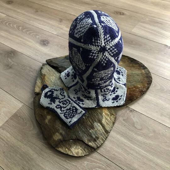 Das wunderschöne Set besteht aus einem Loop, einer Mütze und passenden Pulswärmern.