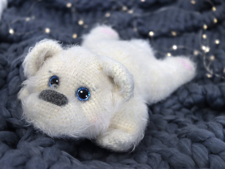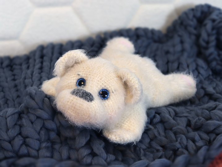 weich. Der Bär ist ganz leicht nachzuarbeiten. Die Maschen mit empfohlener Wolle sind sehr