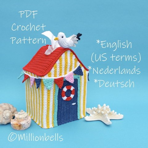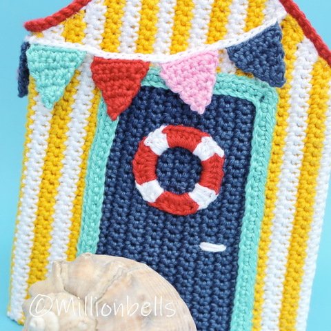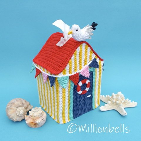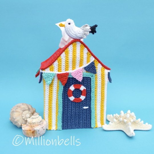 Diese Anleitung erklärt, wie Sie einen hübschen und farbenfrohen Strandhaus Taschentuchbox Hülle häkeln können wie abgebildet, einschließlich Rettungsring, Wimpel und niedlicher Möwe. Die Hülle wird aus Baumwollgarn und Häkelnadel 2.5 mm hergestellt.