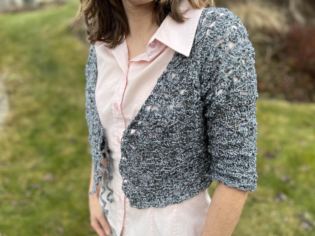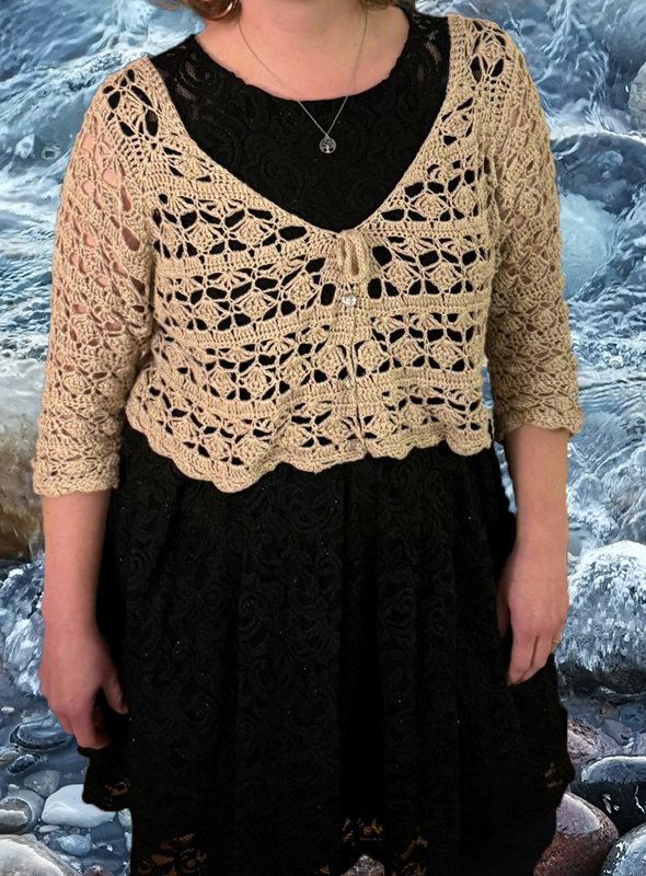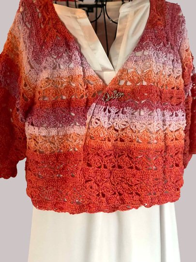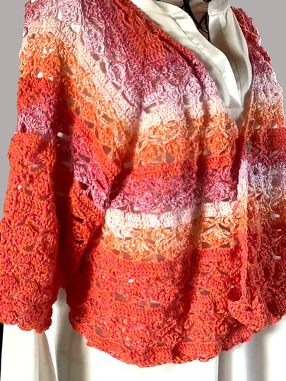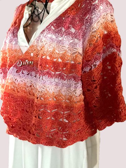 Hier erwirbt man lediglich die Anleitung zum Häkeln des Boleros "Blooming Hug", kein fertiges Kleidungsstück.