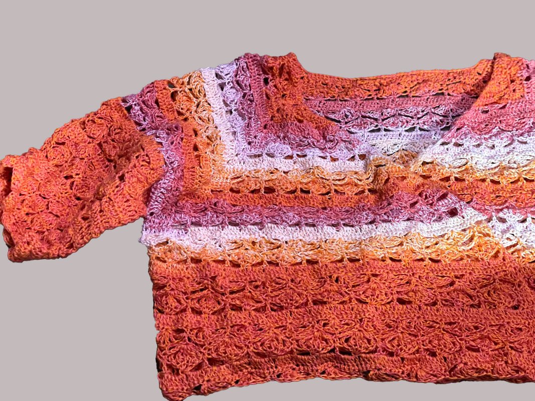 Bitte beachte, dass alle Angaben für meine Statur, Kleidergröße, Häkelweise und Garn notiert sind. Jeder muss Kleidungsstücke an sich individuell anpassen. Das heißt, dass wenn man mehr Reihen bis zum Ende der Zunahmen und/oder bis zur Ärmelschließung benötigt, die Mustersätze entsprechend selbstständig weitergeführt werden müssen