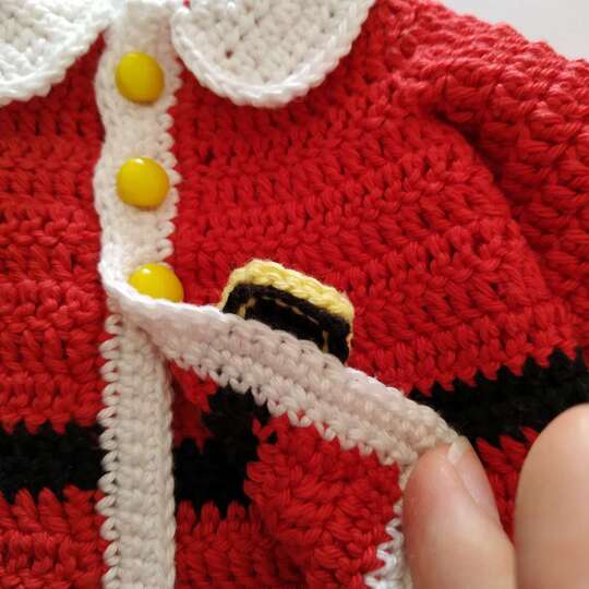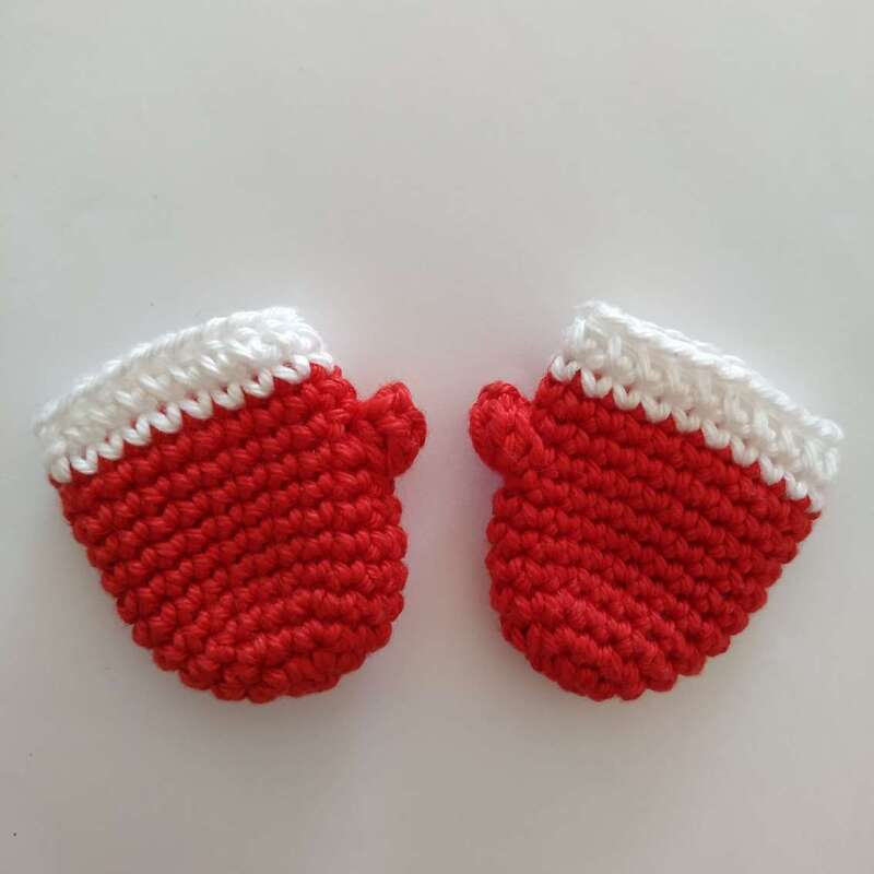 Dieses Häkelmuster enthält eine detaillierte Beschreibung mit vielen Schritt-für-Schritt-Fotos, wie man Kleidung für die Weihnachtsmannpuppe bastelt: Mantel, Hose, Mütze, Handschuhe, Schuhe und Schnuller.