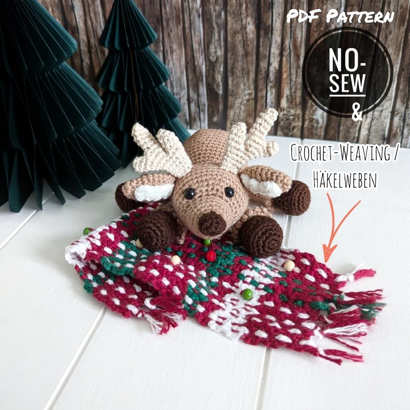 Ein besonderes Highlight dieser Anleitung ist der XL-Schal, der deinem Rentier einen gemütlichen, festlichen Look verleiht. Der Schal kombiniert sowohl Häkeln als auch Weben, aber dafür sind keine speziellen Fähigkeiten oder Werkzeuge nötig. Alles, was du wissen musst, wird im Muster erklärt und gezeigt. Der gehäkelte Webeffekt verleiht deinem Rentier eine besondere handgemachte Note.
