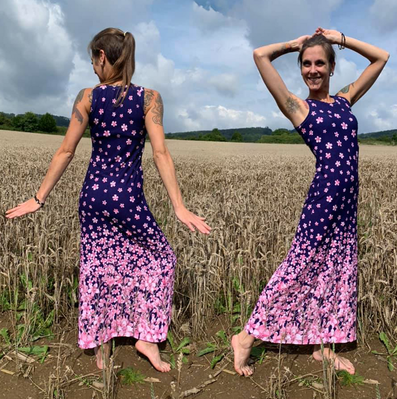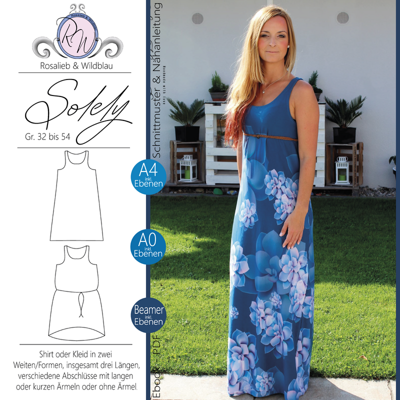 Solely ist ein super schnell genähtes, einfaches und atemberaubendes Kleid wenn es darum geht, deine Stoffe wirken zu lassen! Weshalb? Solely kommt in der Regel ganz ohne Abnäher aus und lässt dir und deinem Stoff damit freien Lauf ohne deine Muster zu unterbrechen oder dir Regeln vorzuschreiben! Das hat natürlich auch seine Vorteile beim Zuschnitt, denn schneller geschnitten als Solely - kaum möglich. Solely ist ein treuer Begleiter für alle Lebenslagen und kann mit seinen zwei unterschiedlichen Formen und drei Längen (Shirt, Kleid und Maxikleid) viele neue Teile in deinen Schrank bringen. Als weitere Auswahloption kannst du Solely für den Sommer ohne Ärmel oder mit kurzen Ärmeln nähen sowie für Herbst, Winter und kühle Frühlingstage die langen Ärmel wählen. Solltest du doch lieber Abnäher bevorzugen oder ein starkes Hohlkreuz haben, findest du Tipps zur Unterbringung der Abnäher weiter hinten im Ebook unter „Anpassungen“. Die weite Form von Solely bringt noch ein kleines Extra mit - süße Schlaufen aus Jerseynudeln mit denen du Form in die Sache bringst und einen kleinen Gürtel oder ein geflochtenes Band integrieren kannst. Rundum sollte also für jeden Geschmack etwas dabei sein :)!