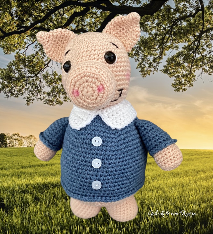 Meine Schweinchen wurden mit Polyacryl gehäkelt und haben eine Grösse von knapp 30 cm.