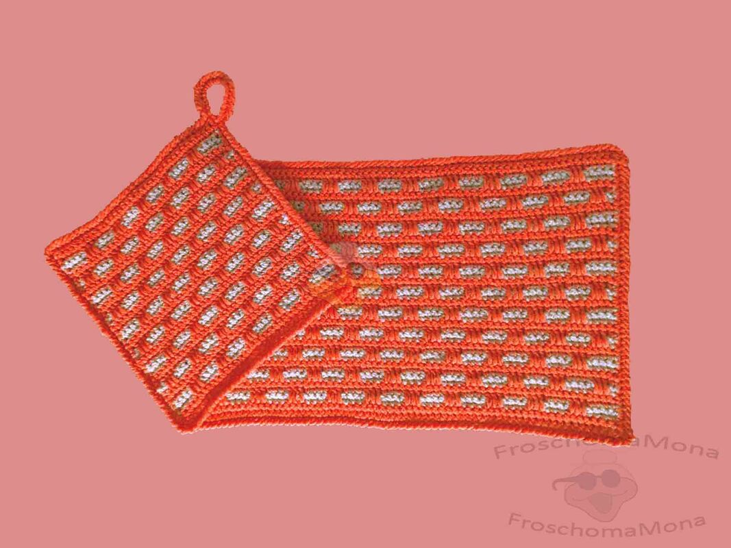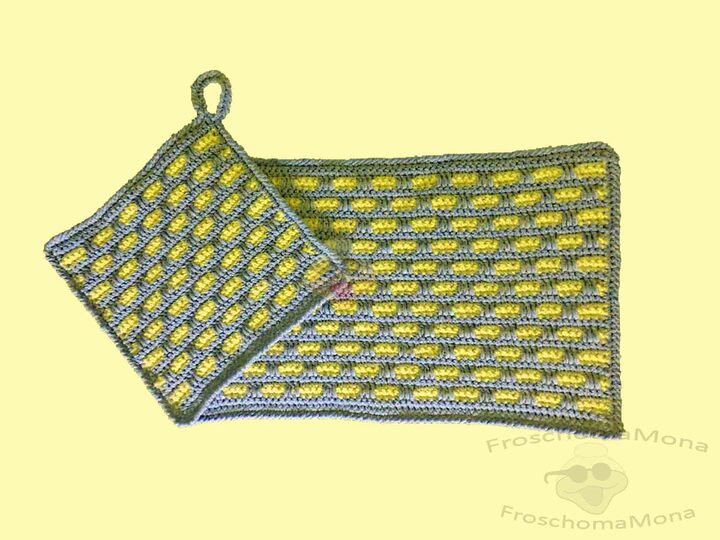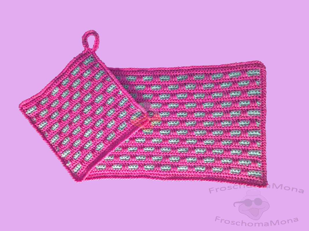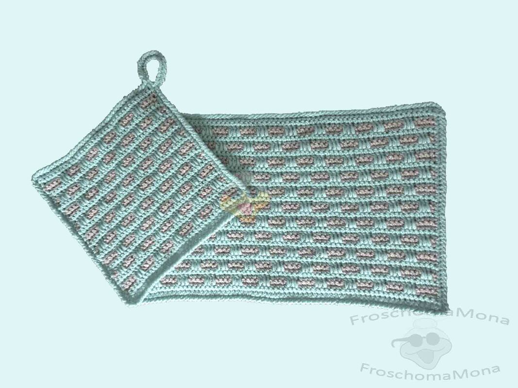 Mit dieser Anleitung kannst du auch als Anfänger Topflappen oder Platzdeckchen mit Mosaik-Muster häkeln.