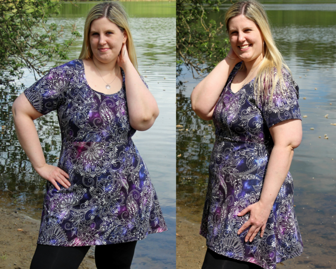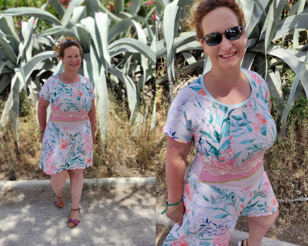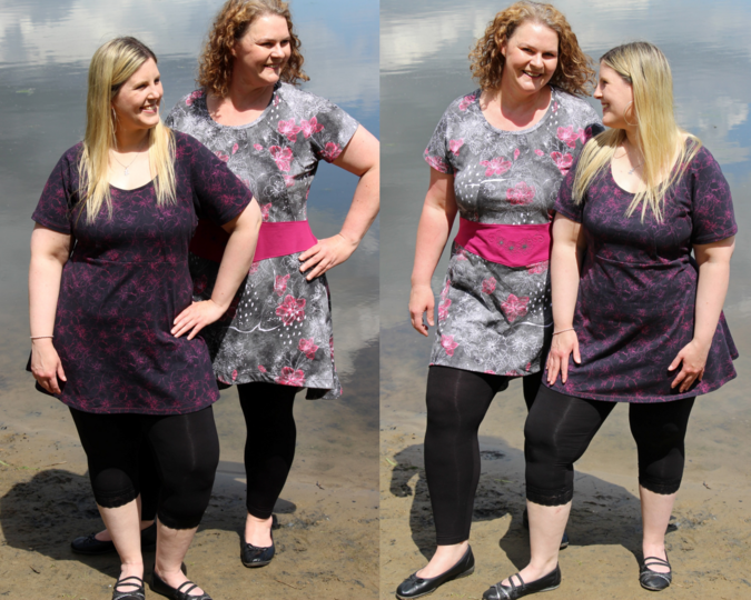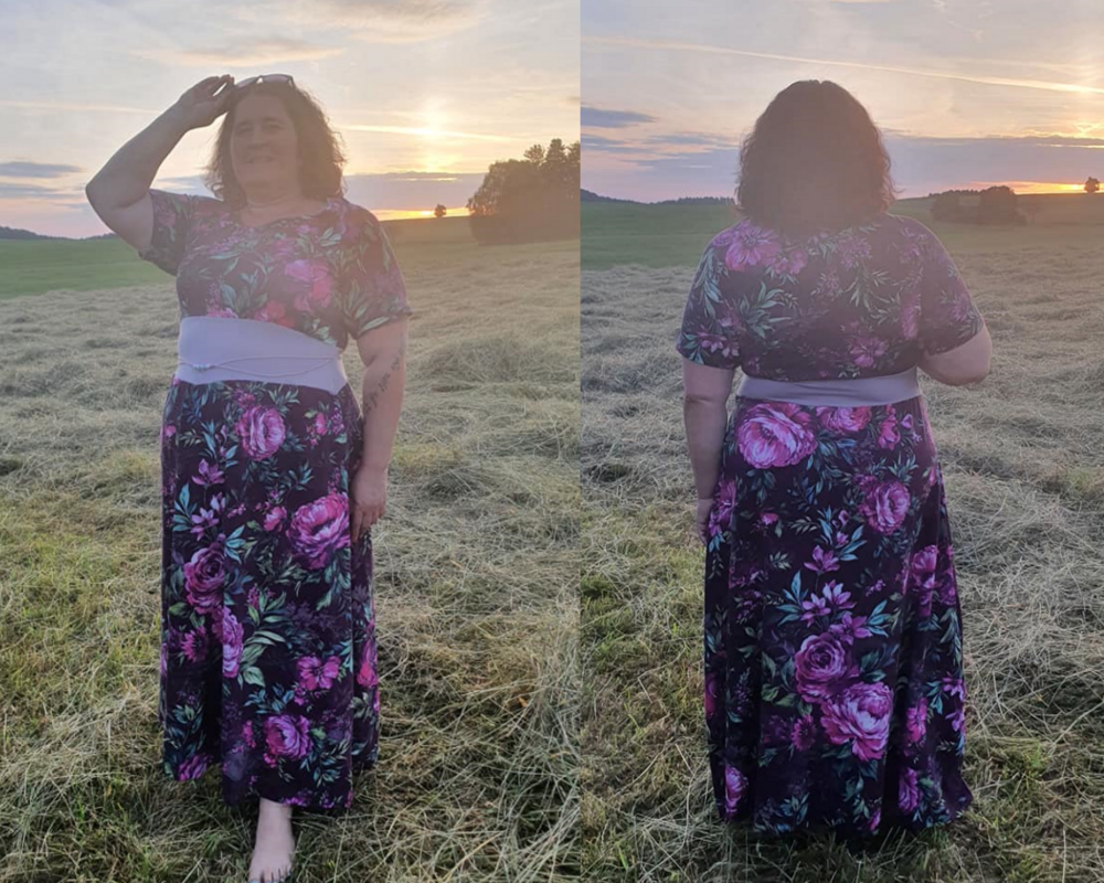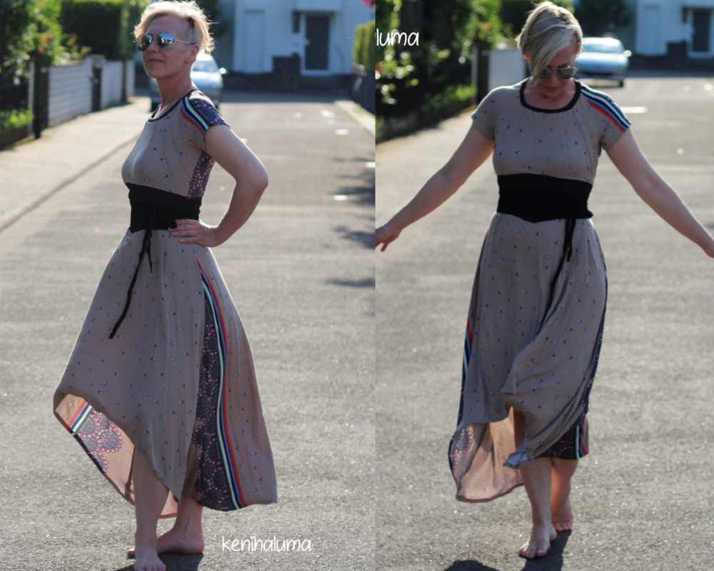 Arimoora kann als Tunika, Kleid oder Maxikleid genäht werden und bringt viele Optionen von einfachen bis aufwendigeren Umsetzungen mit. Das Schnittmuster benötigt etwas Aufmerksamkeit, da es stets beim ersten Nähen eine auf dich ausgerichtete Anpassung benötigt. Diese lässt sich schnell und einfach vornehmen mit den Hinweisen im Ebook, sodass deiner perfekten Arimoora nichts mehr im Wege steht und du dich mit den Varianten des Schnittes wunderbar austoben kannst. Der Schnitt bringt grundsätzlich ein Raglanoberteil mit Biesenoptik mit, hat ein gerafftes Rockteil oder ein weites A-Linienrockteil zur Verfügung und kann mit verschiedenen Ärmeln sowie einer Bindevariante stets neu erfunden werden. Allen Varianten gemeinsam ist das Mittelteil, welches Spitz zuläuft. Optional kannst du dieses aber auch gemeinsam mit dem A-Linienrockteil zu- schneiden und erhältst damit eine Arimoora ohne Mittelteil, falls du hier keine Absetzung wünschst. Die Ärmel, die das Schnittmuster enthält sind Folgende: normaler Ärmel in kurz und lang, glockiger Ärmel mit optionaler Bandraffung, ein Volantärmel oder ein geraffter, weiter Ärmel. Ebenfalls enthalten ist die Anleitung zu einer Bindevariante, welche durch das Einfassen der Armausschnitte und des Halsausschnittes entsteht. Arimoora verfügt in all ihren Rockteillängen auch jeweils über eine Vokuhilaversion (Ausnahme Tunika). Das leicht gespreizte vordere Rockteil der A-Linienversion sorgt für Freiraum am Bauch und lässt das Rockteil in leichten Wellen seitlich abschließen.