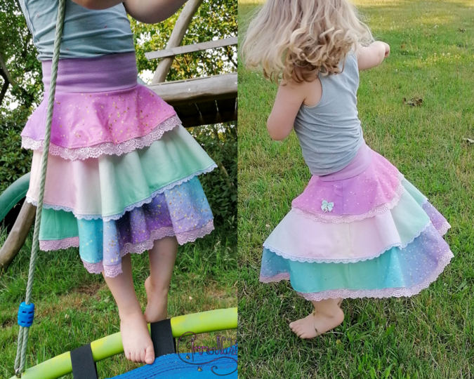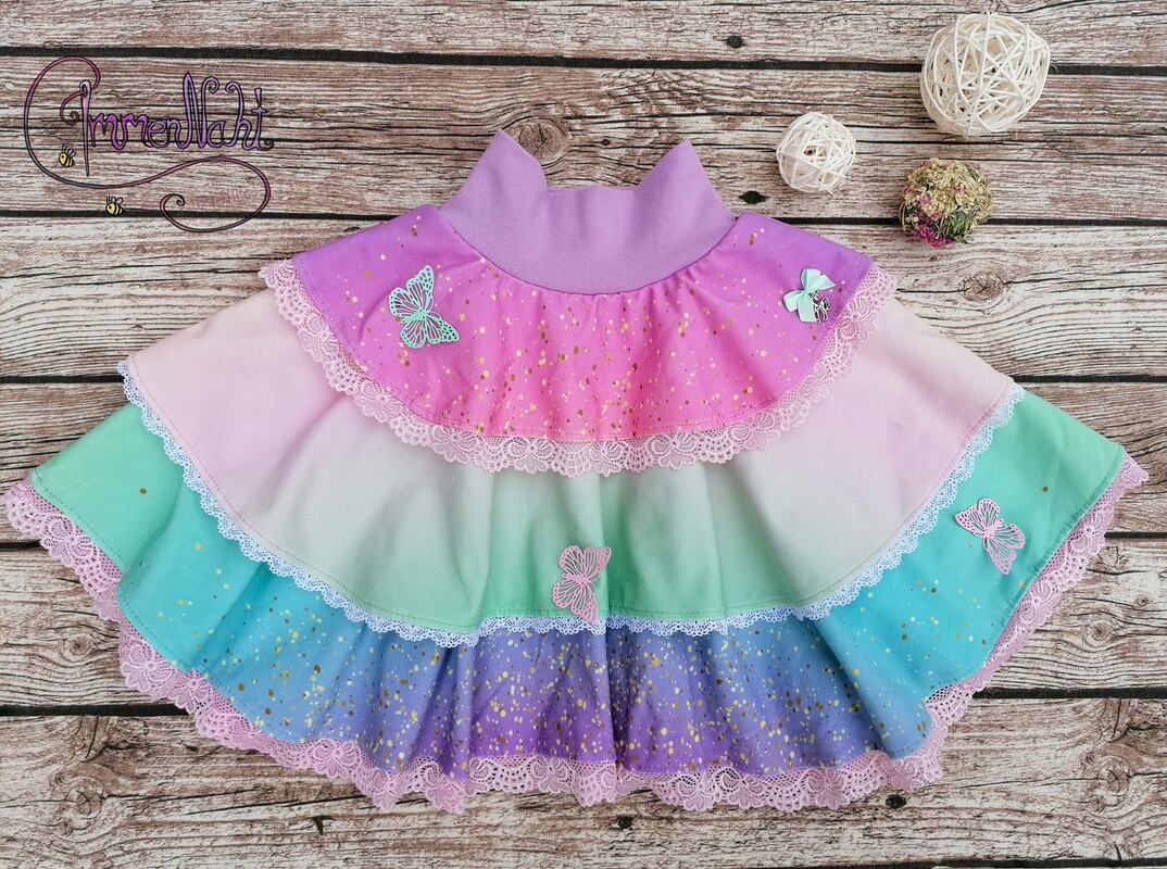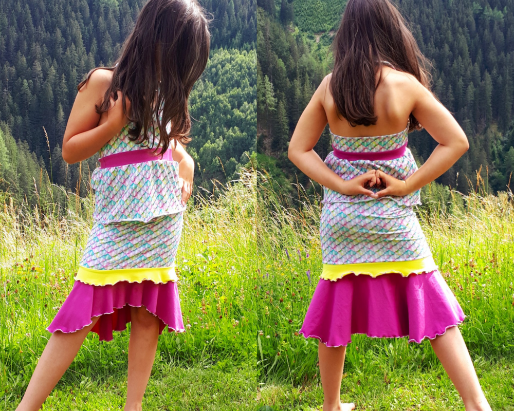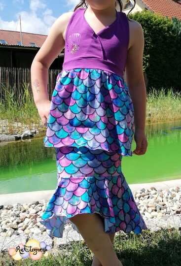 Dieser süße Meerjungfrauenrock ist Teil der Ariella-Serie und bietet dir die Möglichkeit, gleich zwei tolle Rockversionen in ganz unterschiedlichen Looks zu nähen! Das Schnittmuster enthält alle Teile für einen imposanten, längeren Meerjungfrauenrock oder einen süßen Tellerrock im Meerjungfrauenlook. So gibt es für den langen Rock ein schmales Bleistiftrockteil, welches mit insgesamt fünf verschiedenen Volantstufenteilen verbunden werden kann. Für den Tellerrock, werden die gleichen Volantstufen genutzt, sodass sich eine große Zahl an Kombinations- und Umsetzungsmöglichkeiten ergibt. Diese Stufen lassen sich frei und nach Geschmack kombinieren und können sowohl doppellagig als auch einfach genutzt werden. Besonders für den Meerjungfrauenlook geeignet, ist die „Flossystufe“, welche eine Vokuhilavolantstufe ist und der Optik einer Meerjungfrauenflosse entspricht. Auch diese Volantstufe ist mit allen anderen Stufen frei kombinierbar. Beim Bauchabschluss hast du die Wahl zwischen dem enthaltenen Jerseybauchbündchen oder einem normalen Bauchbündchen aus Bündchenware. Egal ob du einen optisch sehr aufwendigen, schicken Rock für besondere Anlässe oder ein verspieltes, alltägliches Tellerröckchen suchst - Ariella macht beides möglich :)!