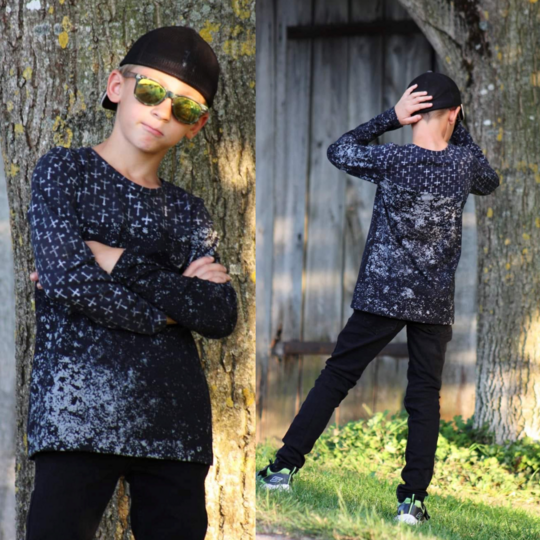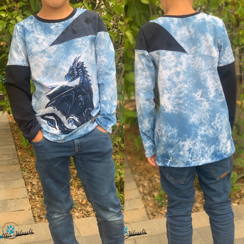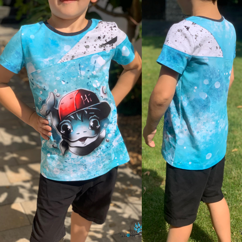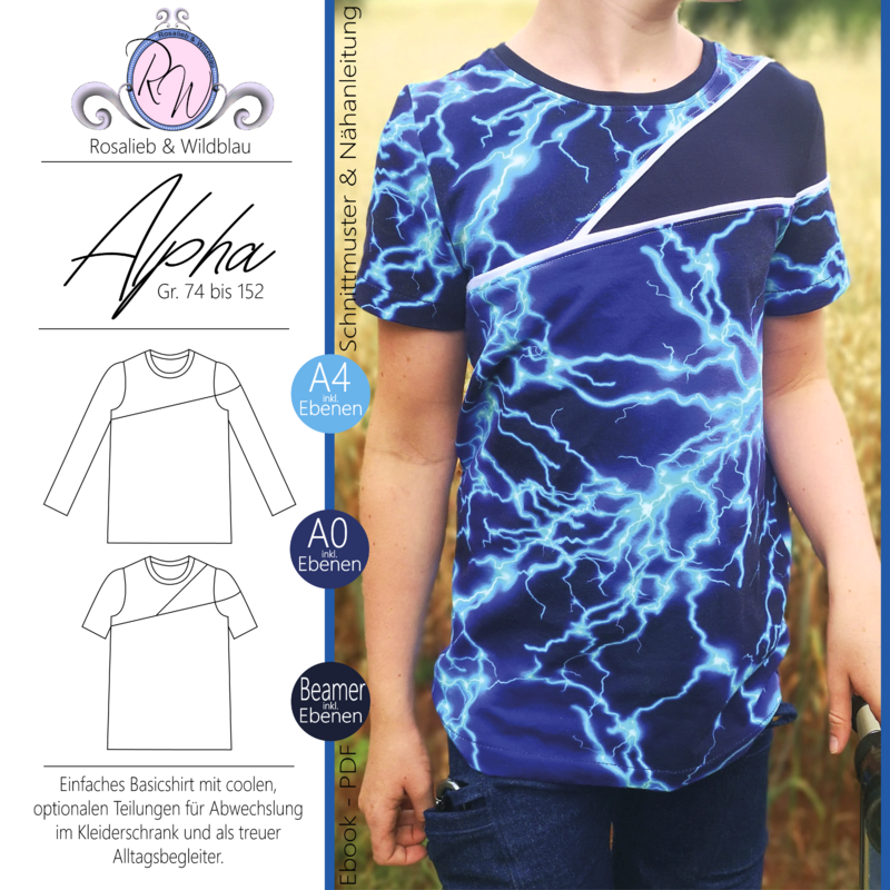 Alpha ist ein einfaches Basicshirt das durch seine optionalen Teilungen überrascht und immer wieder abgewandelt werden kann! Somit hast du mit diesem Schnittmuster einen tollen Alltagsbegleiter, der nach Wunsch auch super mit Stoffkombinationen in Szene gesetezt werden kann oder sich prima für Panels mit größeren Motiven eignet! Das Schnittmuster ist an seinen Abschlüssen auf einen Saum ausgelegt und kann mit langen und kurzen Ärmeln genäht werden. Das Shirt ist gerade geschnitten und kann je nach Geschmack mit der Teilung auf der Front- und Rückseite oder sogar mit der Teilung über den Ärmel verlaufend umgesetzt werden. Der Rundhalsausschnitt des Schnittmusters ist auf ein Bündchen ausgelegt und sorgt für angenehmen Tragekomfort. Enthalten sind alle Dateien ( A4, Großdruck und Beamerdatei) mit Ebenen sowie genaue Anleitung zum Nähen des Shirts. Das Schnittmuster enthält keine Naht- oder Saumzugabe.