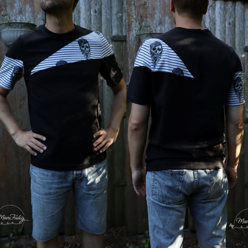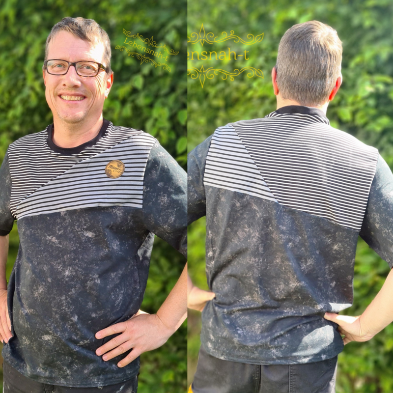 Alpha ist ein einfaches Basicshirt das durch seine optionalen Teilungen überrascht und immer wieder abgewandelt werden kann! Somit hast du mit diesem Schnittmuster einen tollen Alltagsbegleiter, der nach Wunsch auch super mit Stoffkombinationen in Szene gesetezt werden kann oder sich prima für Panels mit größeren Motiven eignet! Das Schnittmuster ist an seinen Abschlüssen auf einen Saum ausgelegt und kann mit langen und kurzen Ärmeln genäht werden. Das Shirt ist gerade geschnitten und kann je nach Geschmack mit der Teilung auf der Front- und Rückseite oder sogar mit der Teilung über den Ärmel verlaufend umgesetzt werden. Der Rundhalsausschnitt des Schnittmusters ist auf ein Bündchen ausgelegt und sorgt für angenehmen Tragekomfort. Enthalten sind alle Dateien ( A4, Großdruck und Beamerdatei) mit Ebenen sowie genaue Anleitung zum Nähen des Shirts. Das Schnittmuster enthält keine Naht- oder Saumzugabe.