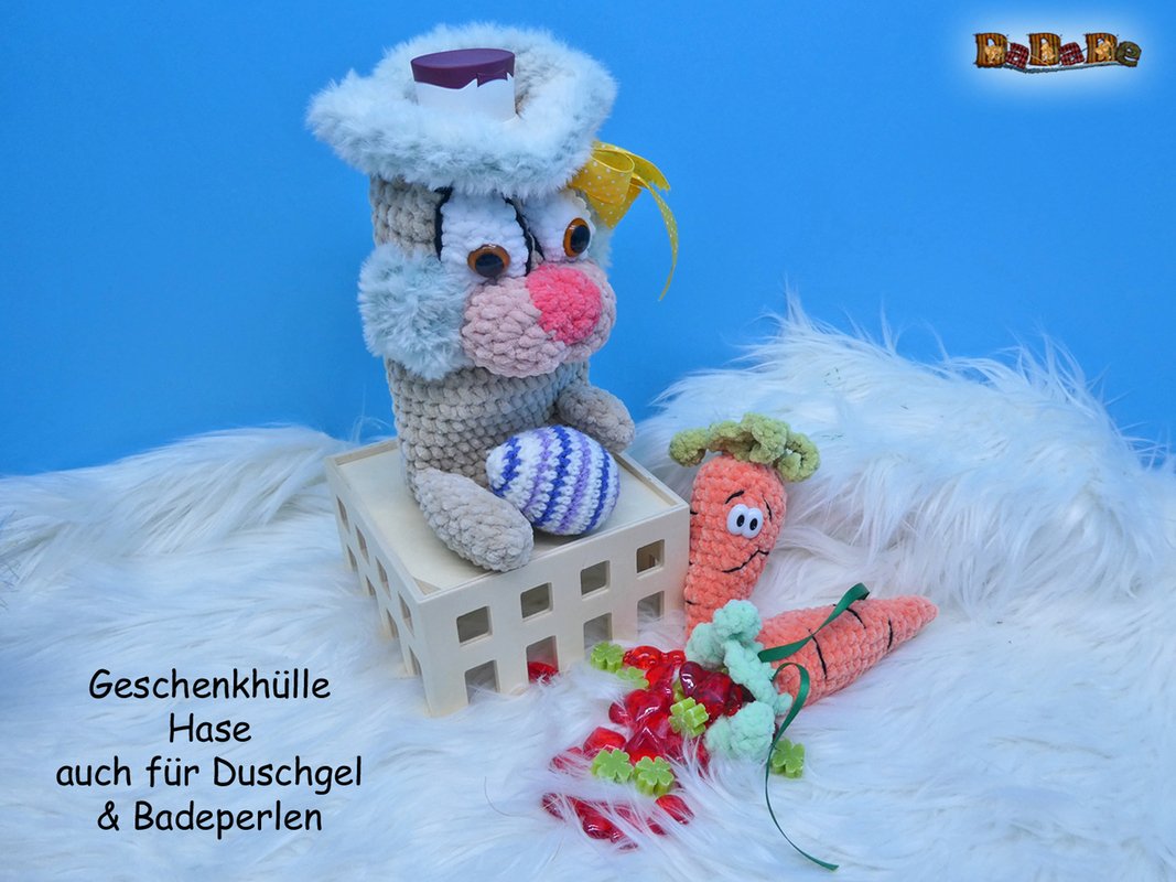 Sie kaufen hier die Häkelanleitung für die Flaschenhülle Osterhase.