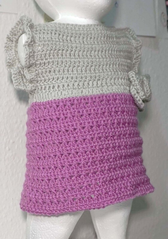 Das fertige Kleid ist ca. 27cm lang und bis zu einem Bauchumfang von ca. 50cm (0-3 Monate).