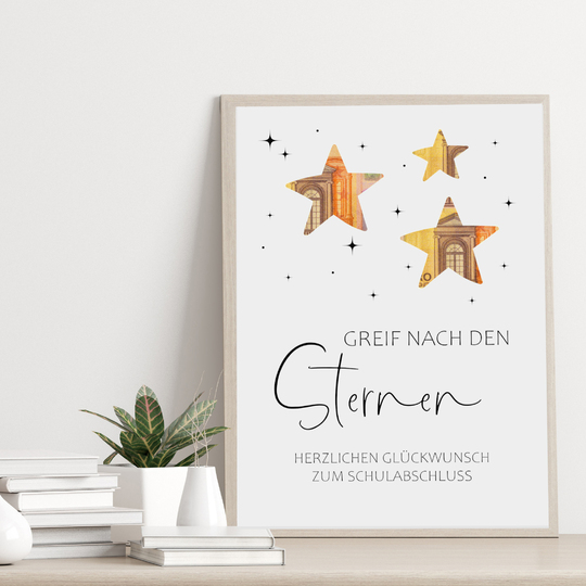 Drucke das Poster bequem Zuhause aus (auf Posterpapier wenn Du magst) und dann schneidest Du mit einem Cuttermesser oder einer kleinen spitzen Schere die Sterne aus.