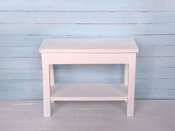 Mit Hilfe dieser bebilderten Schritt-für-Schritt-Anleitung kannst du dir einen Miniatur-Konsolentisch im Maßstab 1:12 aus Foamboard, Pappe oder Holz basteln.
