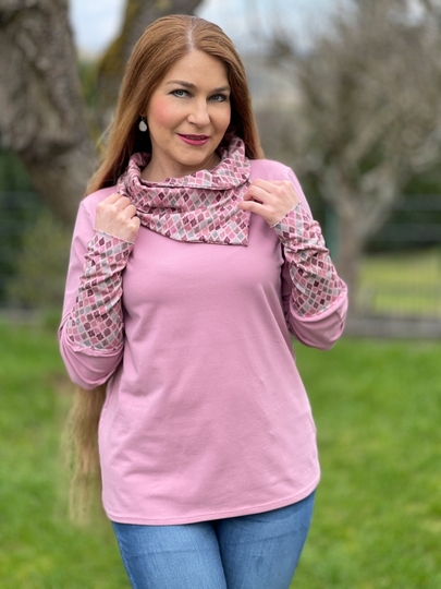 Lass deiner Kreativität freien Lauf! Experimentiere mit verschiedenen Stoffen und Farben, um einen einzigartigen Pullover zu kreieren, der ganz deinem Stil entspricht. Der asymmetrische Kragen bietet zudem die Möglichkeit, unterschiedliche Stoffmuster harmonisch zu kombinieren.