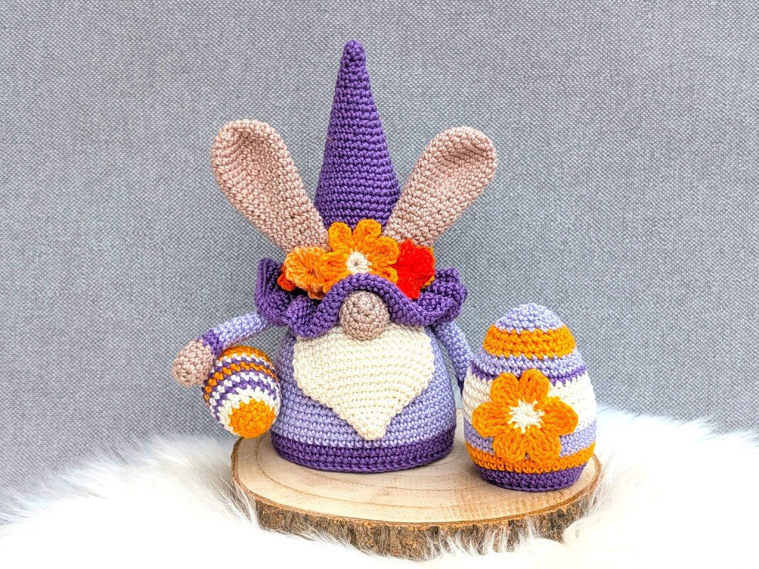 Die Anleitung umfasst 22 Seiten und enthält den Wichtel, zwei verschiedene Eier und zwei verschiedene Blumen. Wer die Grundkenntnisse gut beherrscht und schon das ein oder andere Amigurumi gehäkelt hat, sollte keine Schwierigkeiten bei der Umsetzung haben.
