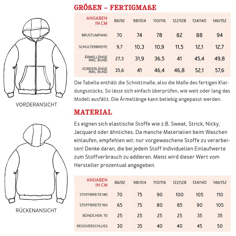 6 Doppelgrößen XS (158/164) bis XXL (58/60)