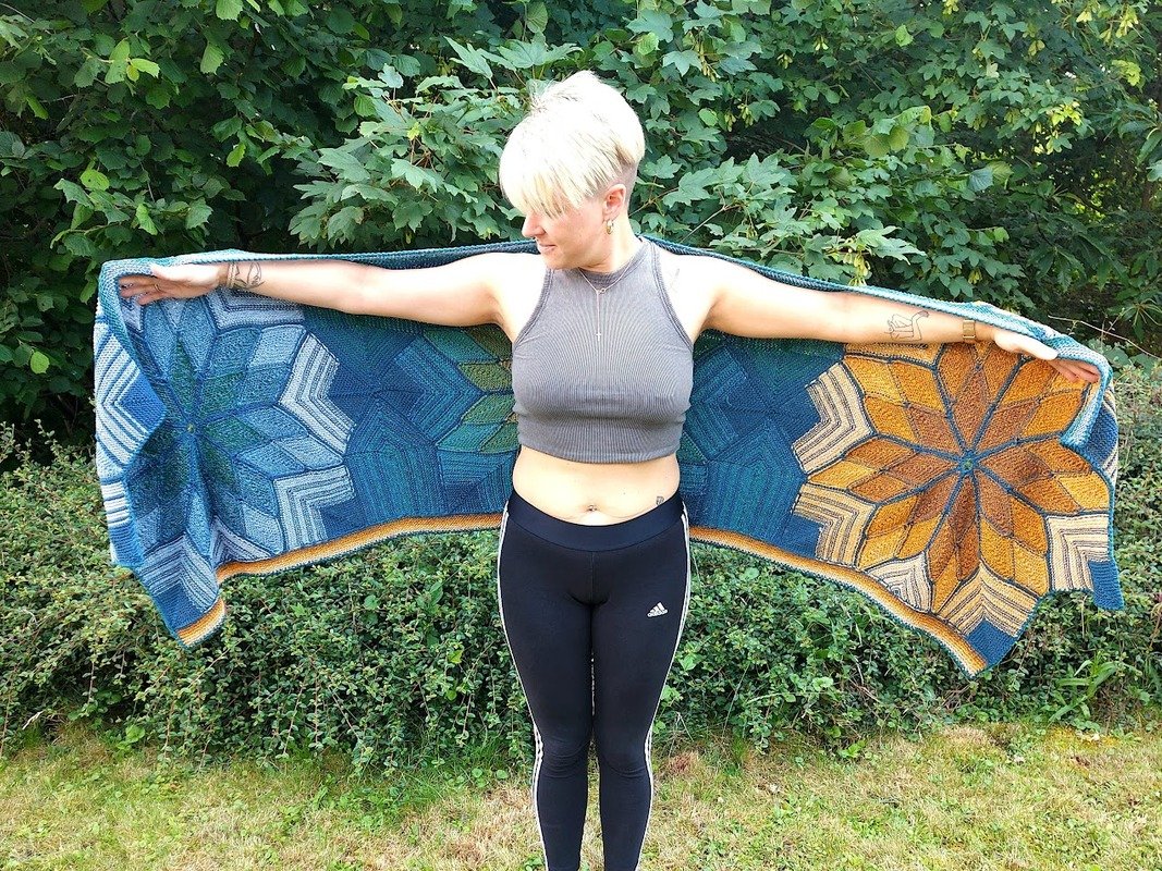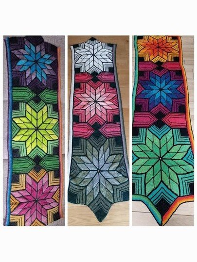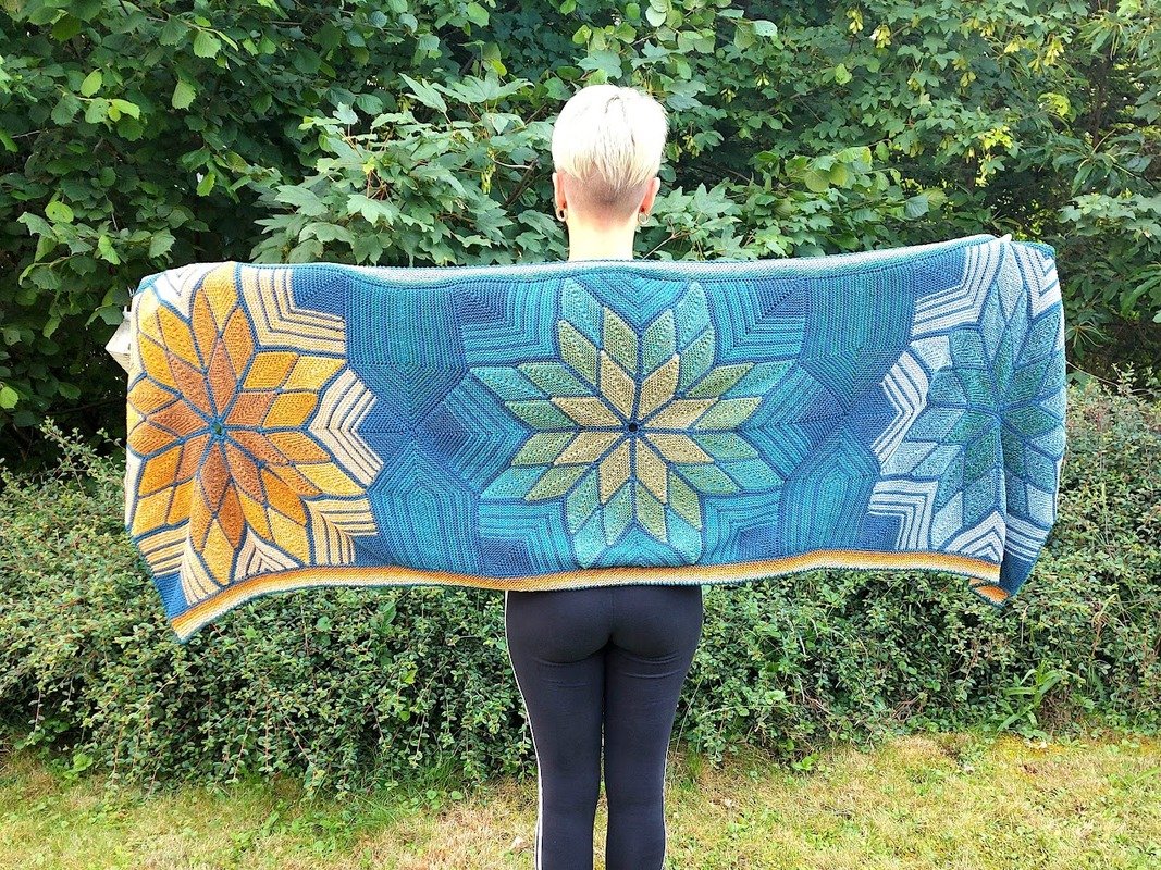 Dieser Schal mit dem Sternenmuster kommt ganz ohne Naht aus, die einzelnen Patches werden aneinander gestrickt, die Sterne werden später miteinander verbunden. Die ausführliche Anleitung erklärt Schritt für Schritt jedes Detail zu diesem Meisterwerk. Diese Anleitung habe ich ursprünglich für einen Adventskalender entwickelt, deshalb auch die Aufteilung in 24 Tage. Also nicht wundern. Und ob du die Stola jetzt 24 oder 240 Tagen strickst ist natürlich dir überlassen. Spaß machen solls.