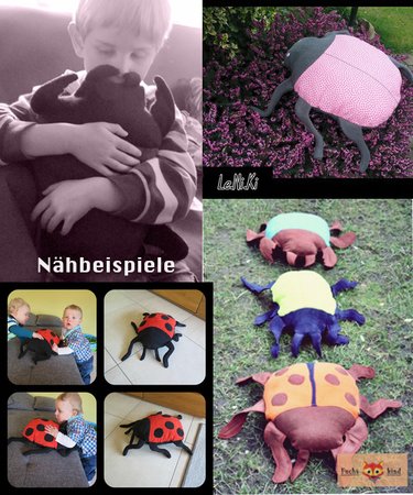 Ebook mit bebilderter Anleitung und Schnittmuster für drei verschiedene Käferkissen - absolut ANFÄNGERGEEIGNET+