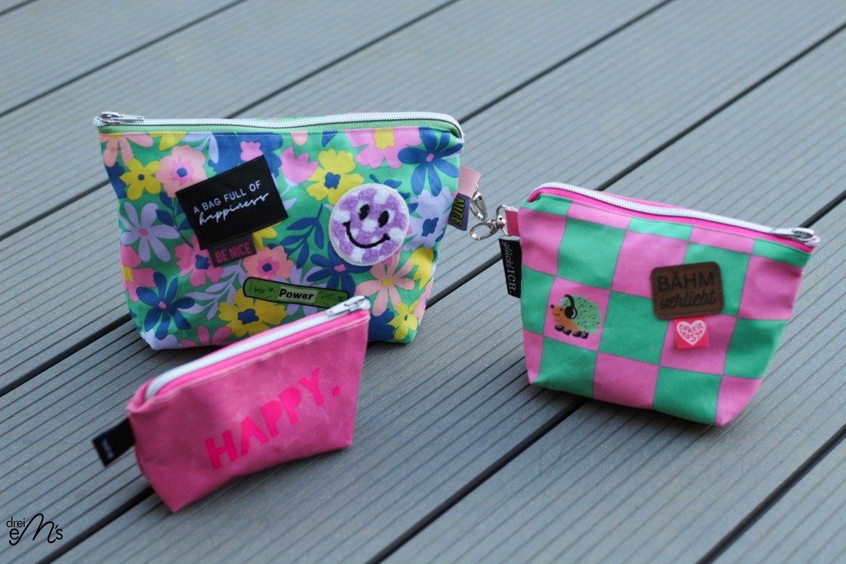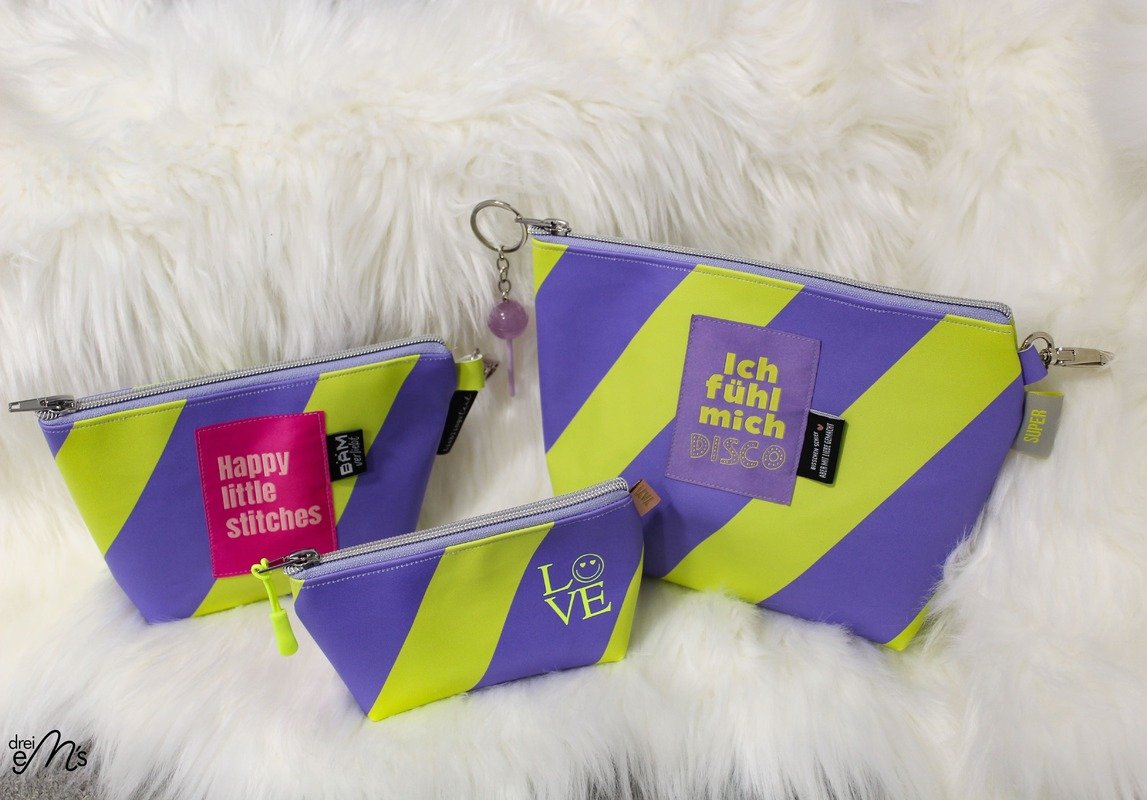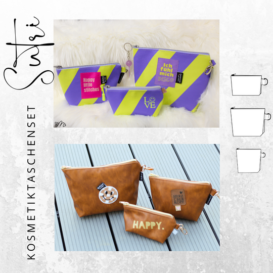 Dieses Kosmetiktaschenset ergänzt die SUTRI Kollektion. Entweder einzeln oder in Kombi mit der FannyPack. Du kannst die drei Größen mit oder ohne Futter nähen.