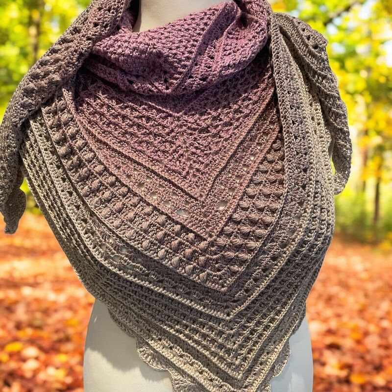 Das fertige Tuch hat eine Größe von etwa 190cm x 70cm. Die Größe kann, je nach Häkelweise, variieren.