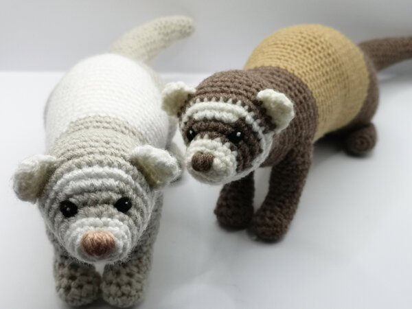 Du nähst nicht gerne zusammen und liebst neue Herausforderungen? Dann ist dieses Frettchen genau richtig für dich. Nur die Vorderbeine werden nachträglich angenäht und sonst wird dieses Frettchen in einem gehäkelt.