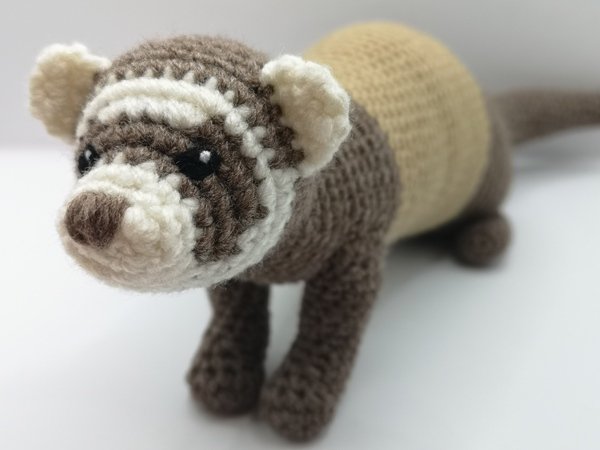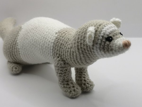Dieses realistisch aussehende, niedliche Frettchen ist pflegeleicht. In anderen Farben gehäkelt kann es auch ein Iltis, Marder, Hermelinchen... werden.
