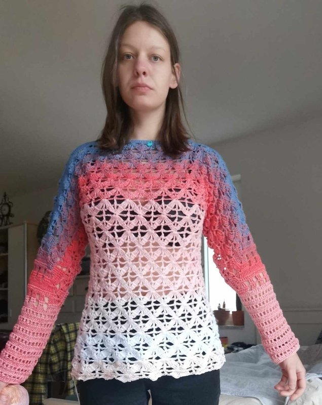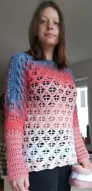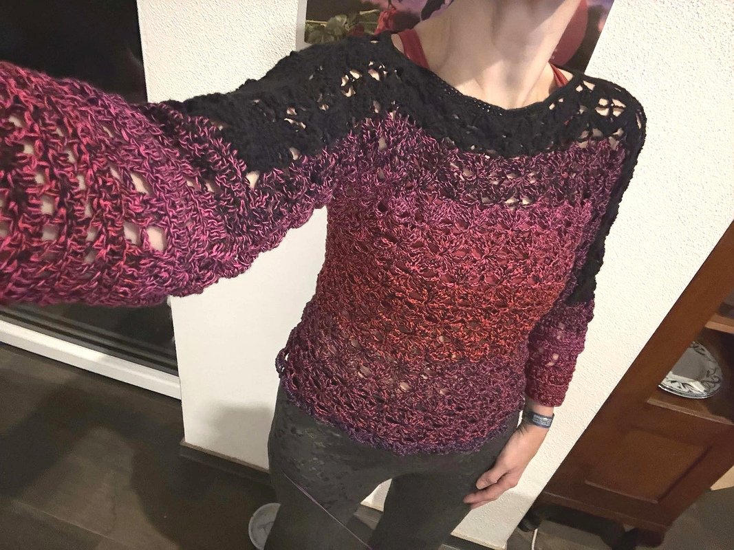 Serpidano wird komplett, inklusive der Ärmel in einem Stück gehäkelt, es gibt keine Nähte.