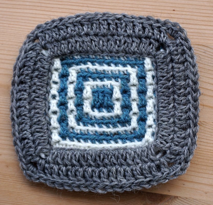 Die Anleitung macht nämlich genau das, was der Titel sagt: Sie bringt dir die Grundlagen des Mosaik-Häkelns bei. Und wenn du einmal diese Grundlagen begriffen hast, wirst du immer mehr und immer kompliziertere Projekte häkeln wollen. Einen kleinen Einblick in die Möglichkeiten der Mosaik-Technik siehst du in den Titelfotos.