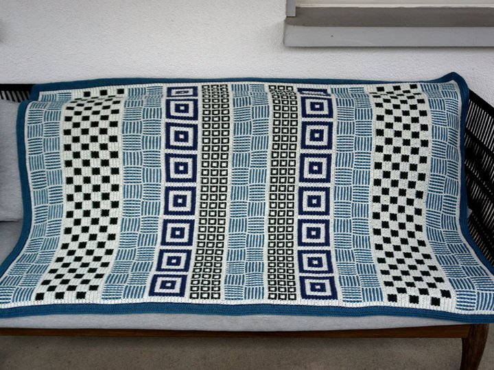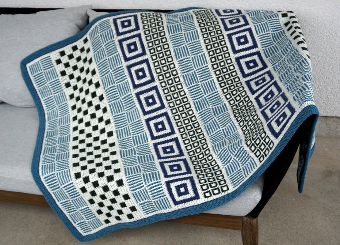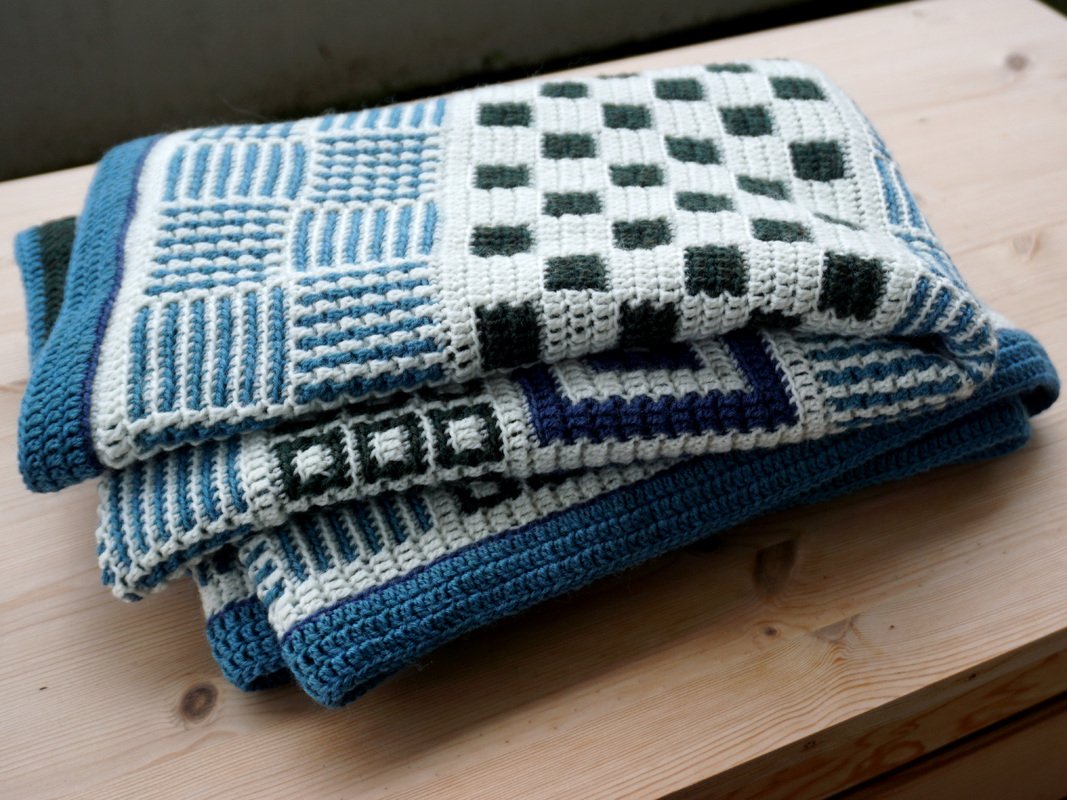 Die Decke besteht aus 4 verschiedenen Mustern. Jedes dieser Muster kann einzeln zu einer Decke verarbeitet werden oder in jeder beliebigen Art miteinander kombiniert werden. Meine Decke ist nur ein Vorschlag. Du kannst deiner Phantasie freien Lauf lassen.