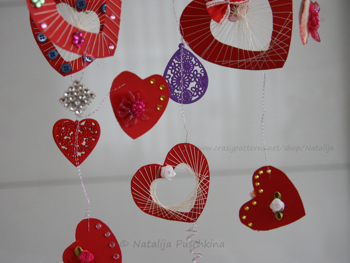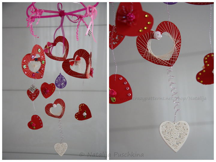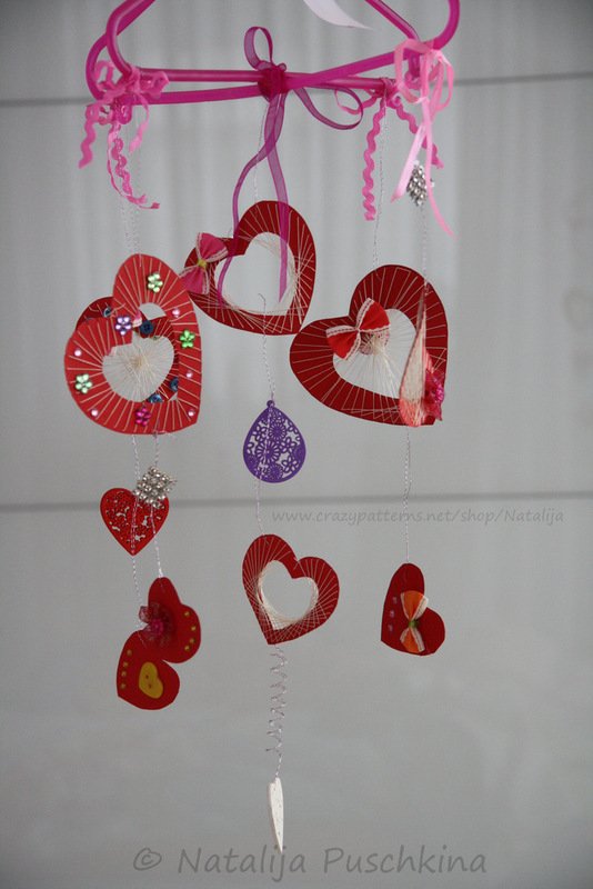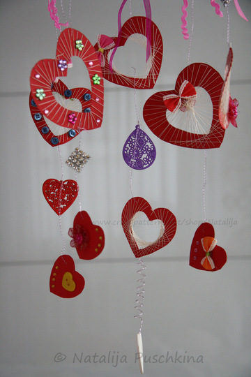 Magst oder kannst du nicht häkeln, sticken oder nähen? Dann ist das genau für dich - Herzmobile. Zum Basteln benötigst du Pappe und Garn. Diese selbstgebastelte Mobile kanns du irgendwo in Deiner Wohnung aufhängen :-)